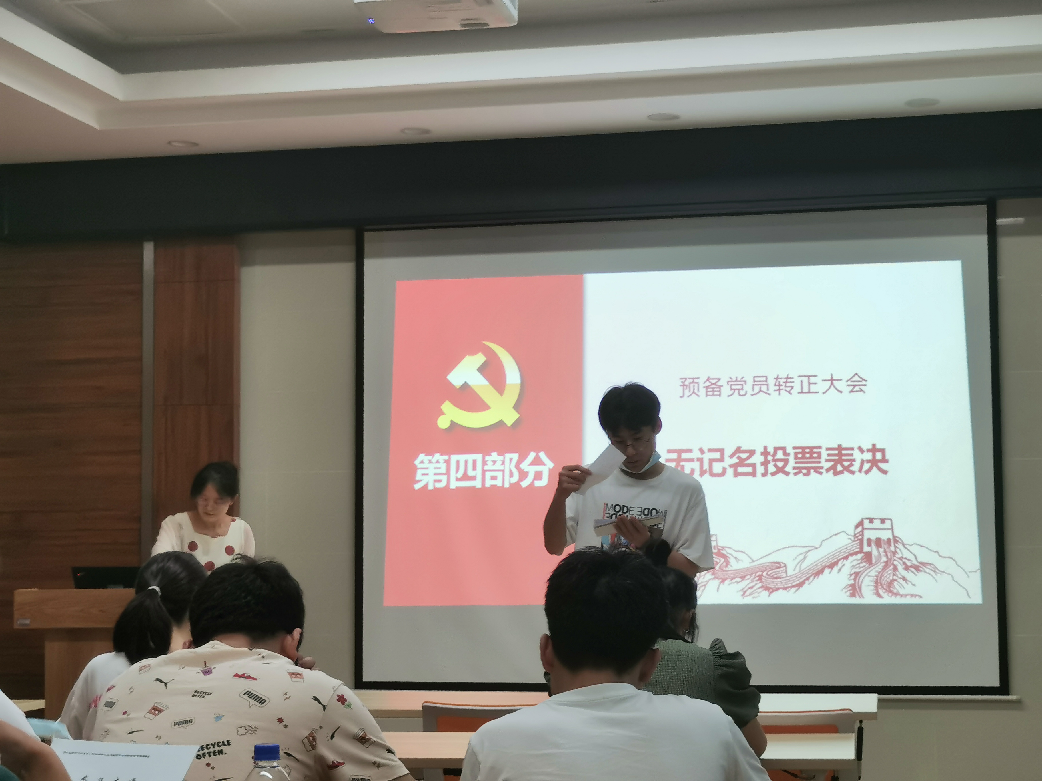 2022年6月22日下午3点,地理信息与地图科学系研究生第三党支部于电脑城429会议室召开预备党员转正大会。本次会议由支部书记张梦同志主持,会议主要讨论朱军同志和郭婉仪同志的转正问题。