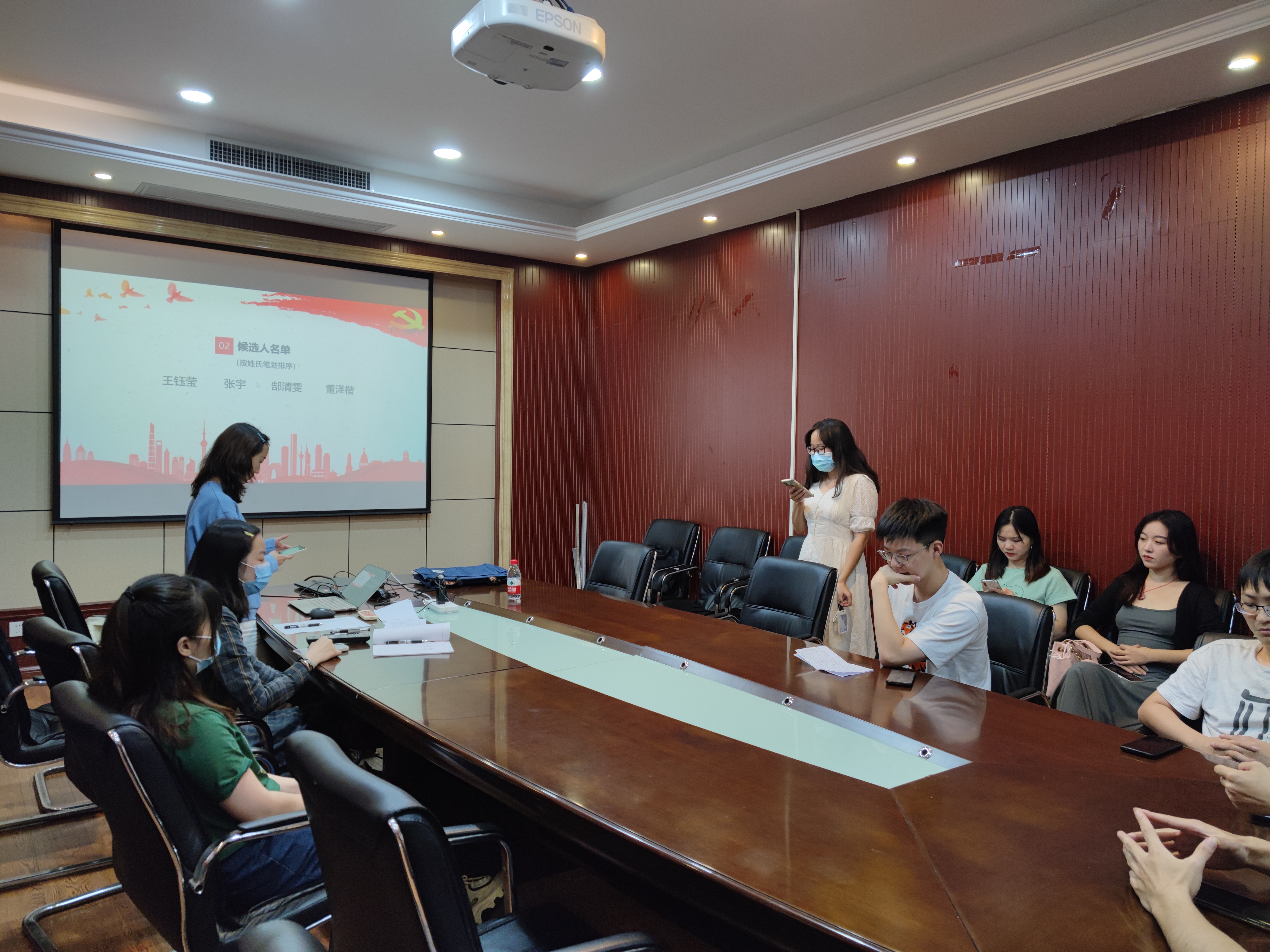 会议第二项,支委调整。王钰莹、张宇、郜清雯、董泽楷四位候选人依次进行竞选发言,同时与会党员发表意见、积极讨论。最后由正式党员进行无记名投票并现场公布投票结果,经表决,四位同志得到党支部大会的一致认可。会后,党支部委员进行了第一次支部委员会议,选举出王钰莹同志担任党支部书记,张宇同志担任纪律委员,郜清雯同志担任宣传委员,董泽楷同志担任组织委员。
