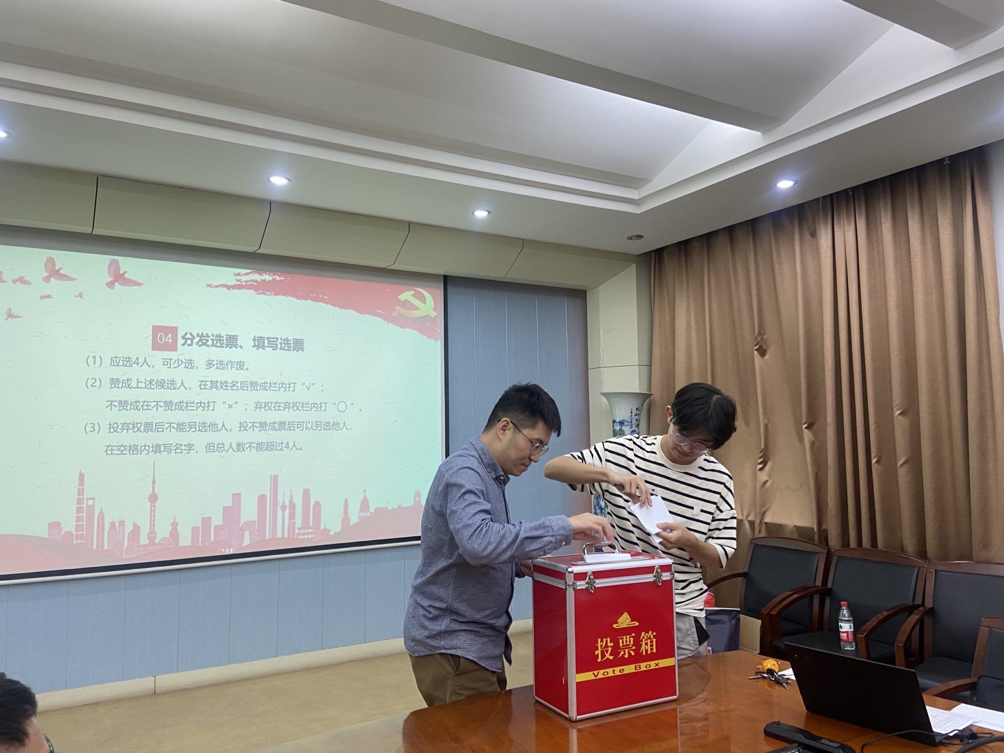 会议第二项,选举产生新一届地理科学与国土资源系研究生第一党支部委员会。按照党章和《中国共产党基层组织选举工作条例》的规定,及学校相关文件要求,由到会的正式党员举手表决通过支委会选举办法、支委会成员候选人名单、监票人和计票人等工作人员,采用无记名投票方式选举产生党支部委员会,监票人对选举过程进行全程监督、对选票的有效性严格把关,最后通过现场投票、唱票、计票,顺利产生了由辛格格、安睿、仝照民、谢怡凡组成的支部委员会。