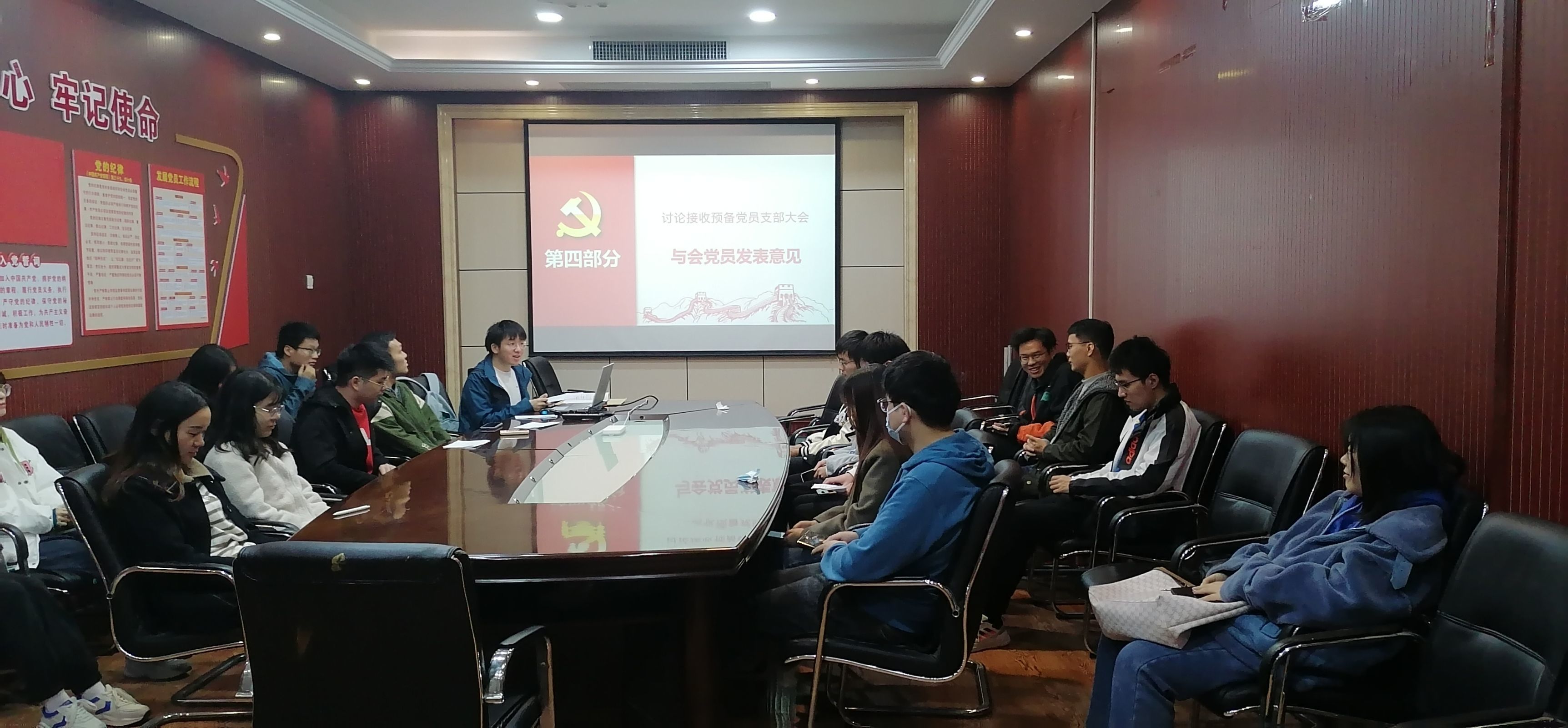 然后,与会党员对于朱俊杰同志与赵炜同志被接收为预备党员的申请进行了充分的讨论。各个党员积极充分地发表意见,对两位同志在理论学习、工作生活等方面的表现与不足进行了客观的评价。