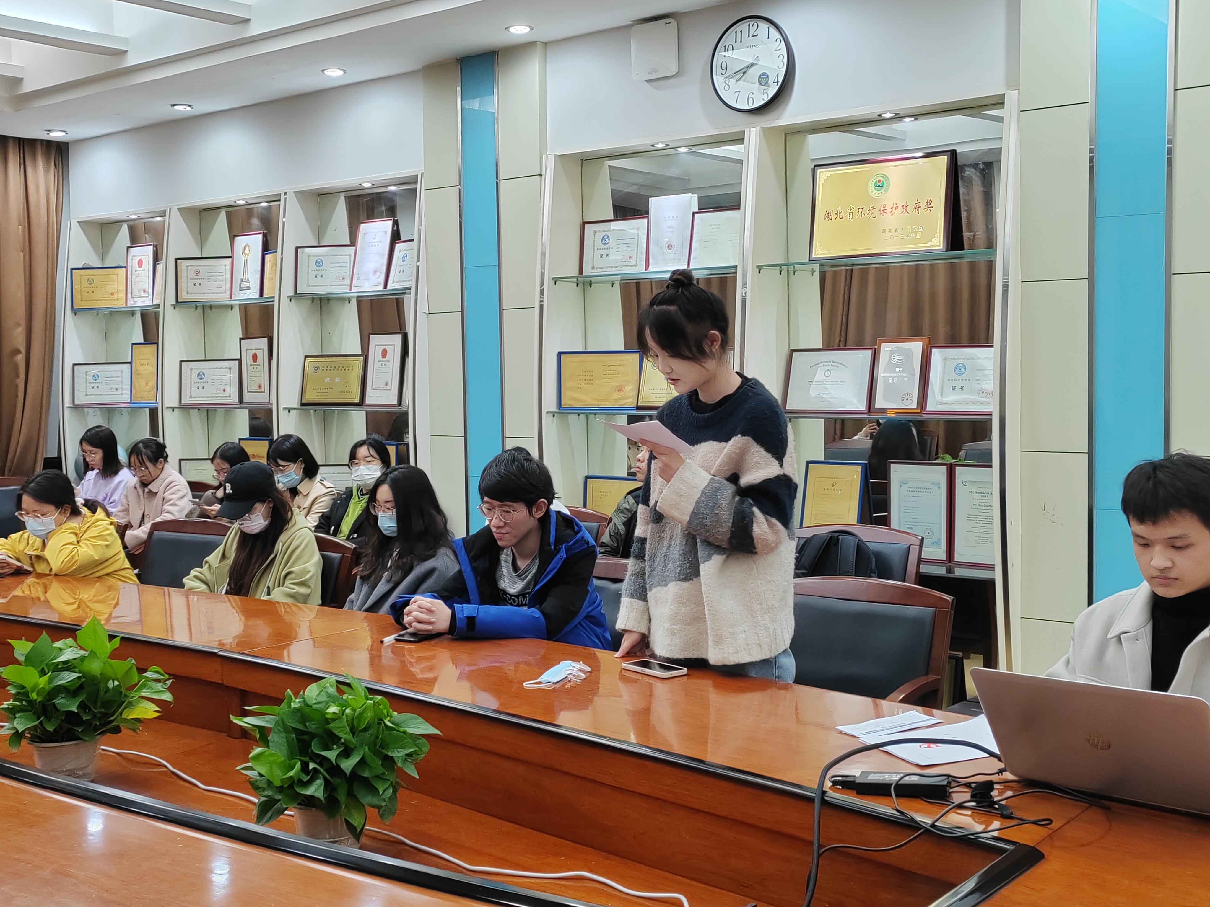 会议第一项由发展对象程宇恒同志汇报对党的认识、入党动机、本人履历、家庭成员和主要社会关系情况、现实表现等有关情况。程宇恒同志表示,在校期间,自己扎根专业,踏实学习,始终用合格党员的标准要求自己,努力提升自己的党性修为,不断向党组织靠拢。