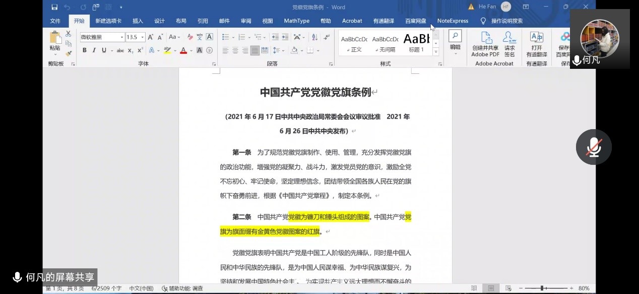 2022年11月25日晚19:30,环境科学与工程系研究生第二党支部在腾讯会议召开支部主题党日活动。会议主题为《中国共产党党徽党旗条例学习》暨“告别内耗 压力应对”学习交流,由支部书记何凡同志主持。