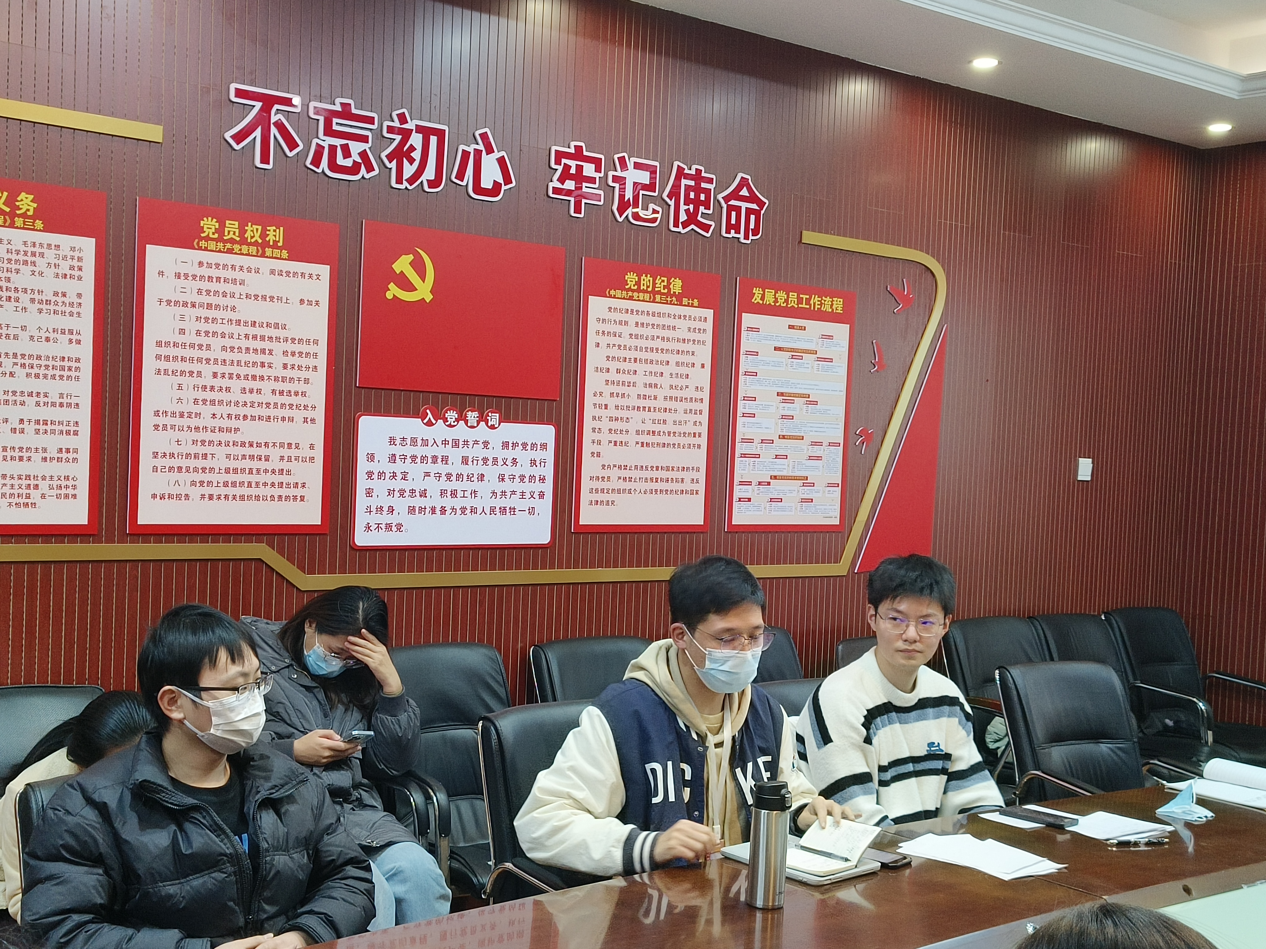会议第四项:与会党员对于贾芷溢同志和曹敏雪同志的转正申请进行了充分的讨论。各位党员积极发表意见,对两位同志在理论思想、科研学习、生活工作等方面的表现与不足进行了客观的评价。