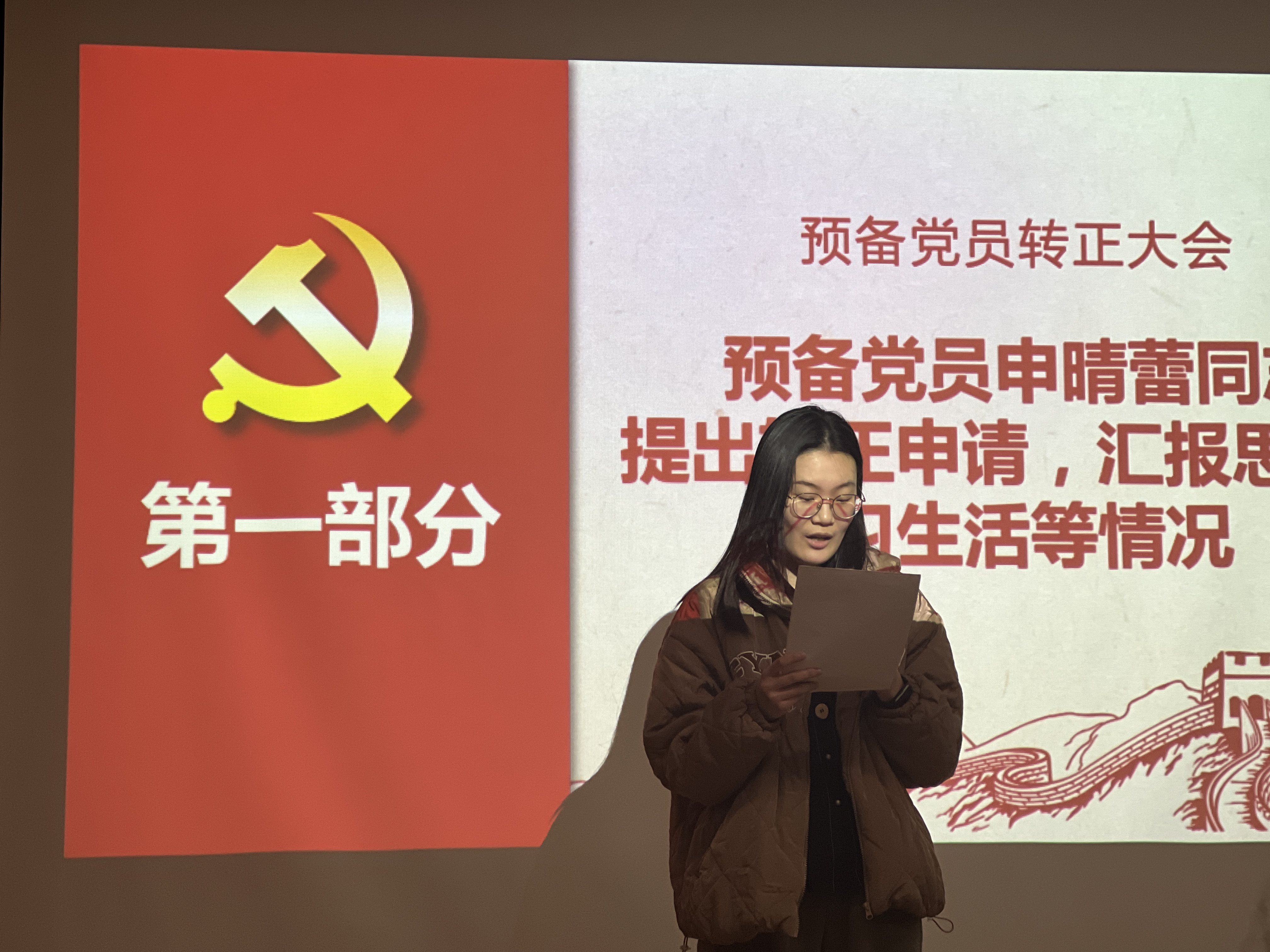 会议第二项,讨论申晴蕾同志的转正工作。首先由申晴蕾同志汇报预备期间的思想和工作情况;之后由支部委员会报告申晴蕾同志预备期间的教育考察情况。与会党员何欣阳同志对申晴蕾同志预备期间的各方面表现予以肯定。经过有表决权的正式党员进行无记名投票,本次大会表决结果为:申晴蕾同志得赞成票23张,不赞成票0张,弃权票0张,同意其按期转正为中共正式党员。最后,申晴蕾同志进行表态,向党组织表明了自己的决心和信心。