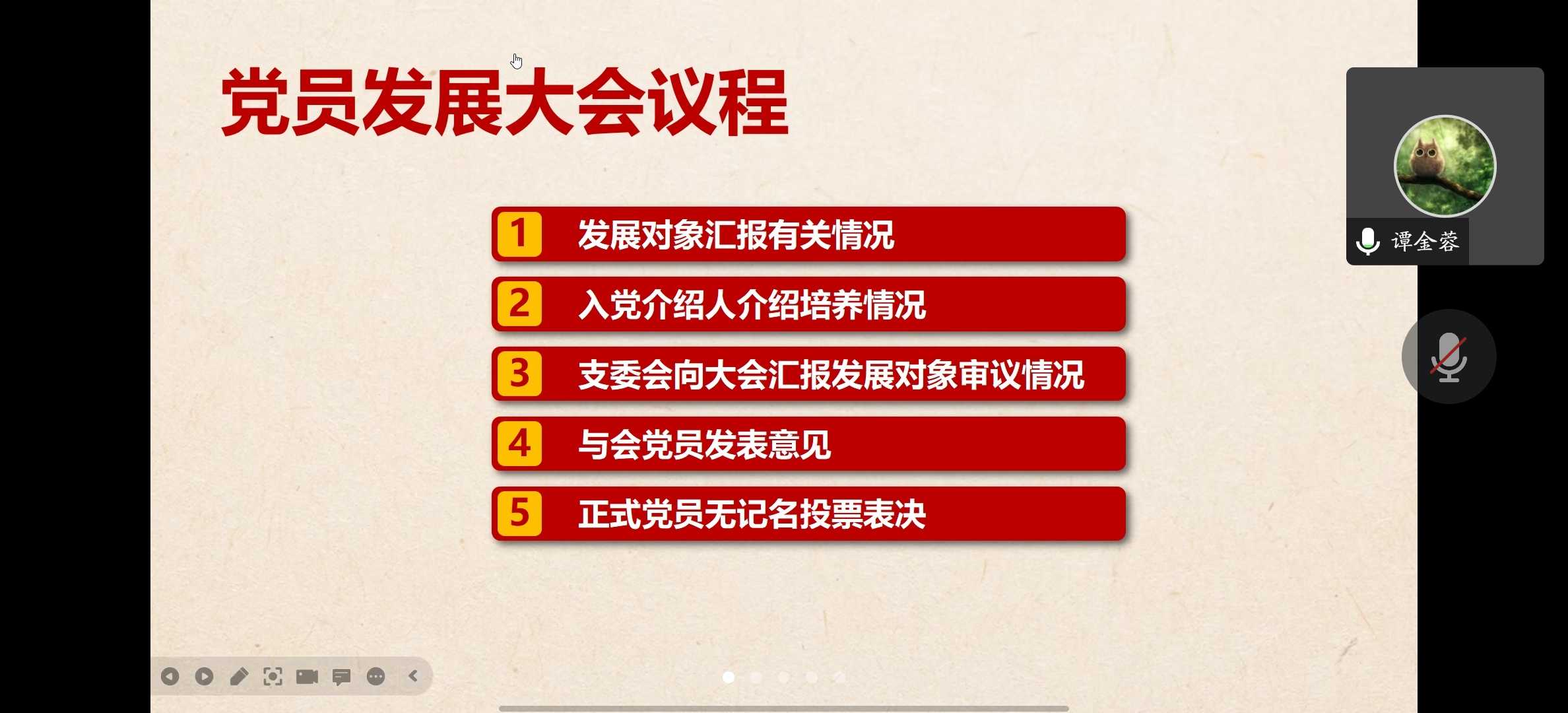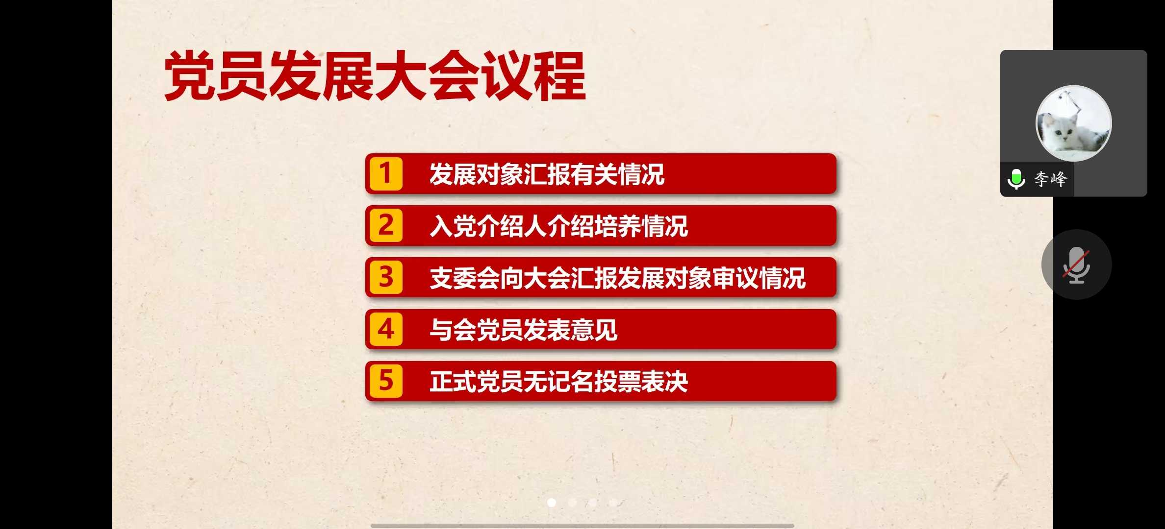 2023年3月29日晚上19:00,地理信息与地图科学系研究生第六党支部通过线上讨论的方式召开接收预备党员支部大会。本次会议由党支部书记周宇氚同志主持。支部党员、发展对象和入党积极分子参与此次会议。