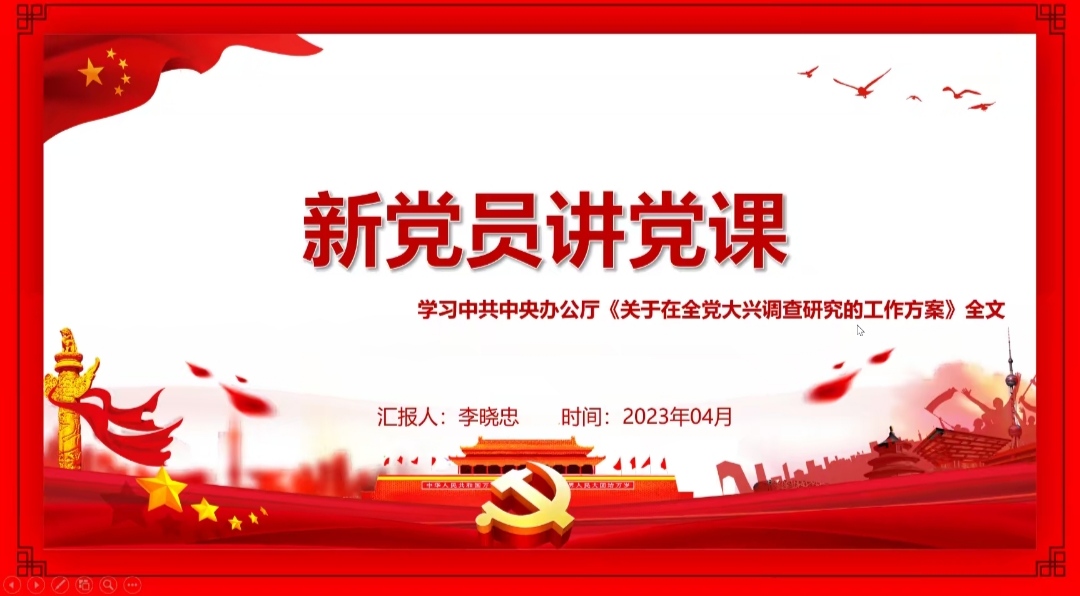 会议第一项,李晓忠同志带领大家学习了中共中央办公厅《关于在全党大兴调查研究的工作方案》全文,并向支部同志们分享了在全党大兴调查研究的重要意义:“当前,我国发展面临新的战略机遇、新的战略任务、新的战略阶段、新的战略要求、新的战略环境。在全党大兴调查研究,是深入学习贯彻习近平新时代中国特色社会主义思想、感悟这一重要思想的真理力量和实践伟力的必然要求,是深刻领悟“两个确立”的决定性意义、坚决做到“两个维护”的具体实践,是应对新时代新征程前进路上的风浪考验、推进中国式现代化的有力举措,是时刻保持解决大党独有难题的清醒和坚定、回答“六个如何始终”的现实需要,是转变工作作风、密切联系群众、提高履职本领、强化责任担当的有效途径。”