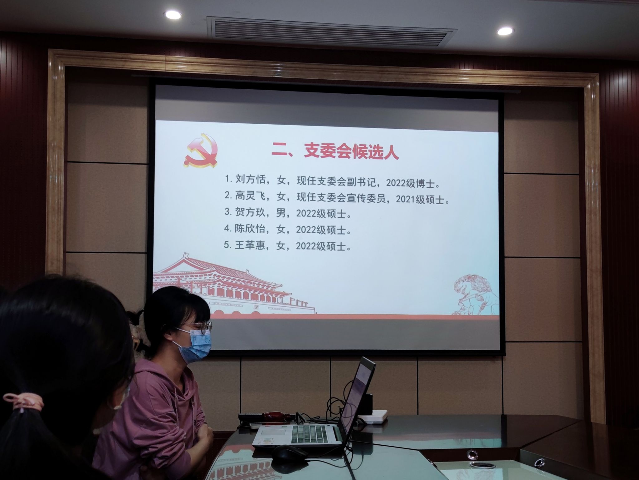 首先,支部书记胡慧同志对本支部情况进行介绍,对支部委员会具体职责进行说明,并按照党章及学校相关文件要求,对本次竞选候选人以及竞选流程进行简单介绍。