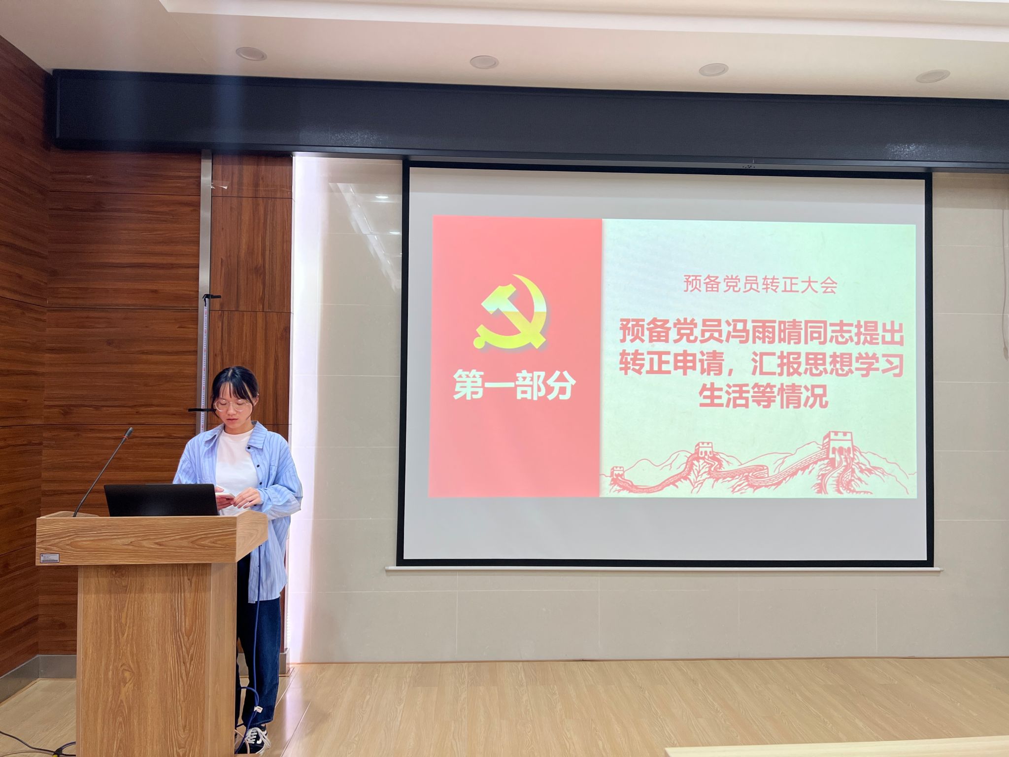 电脑城429会议室召开预备党员转正大会。本次大会由支部书记何欣阳同志主持。