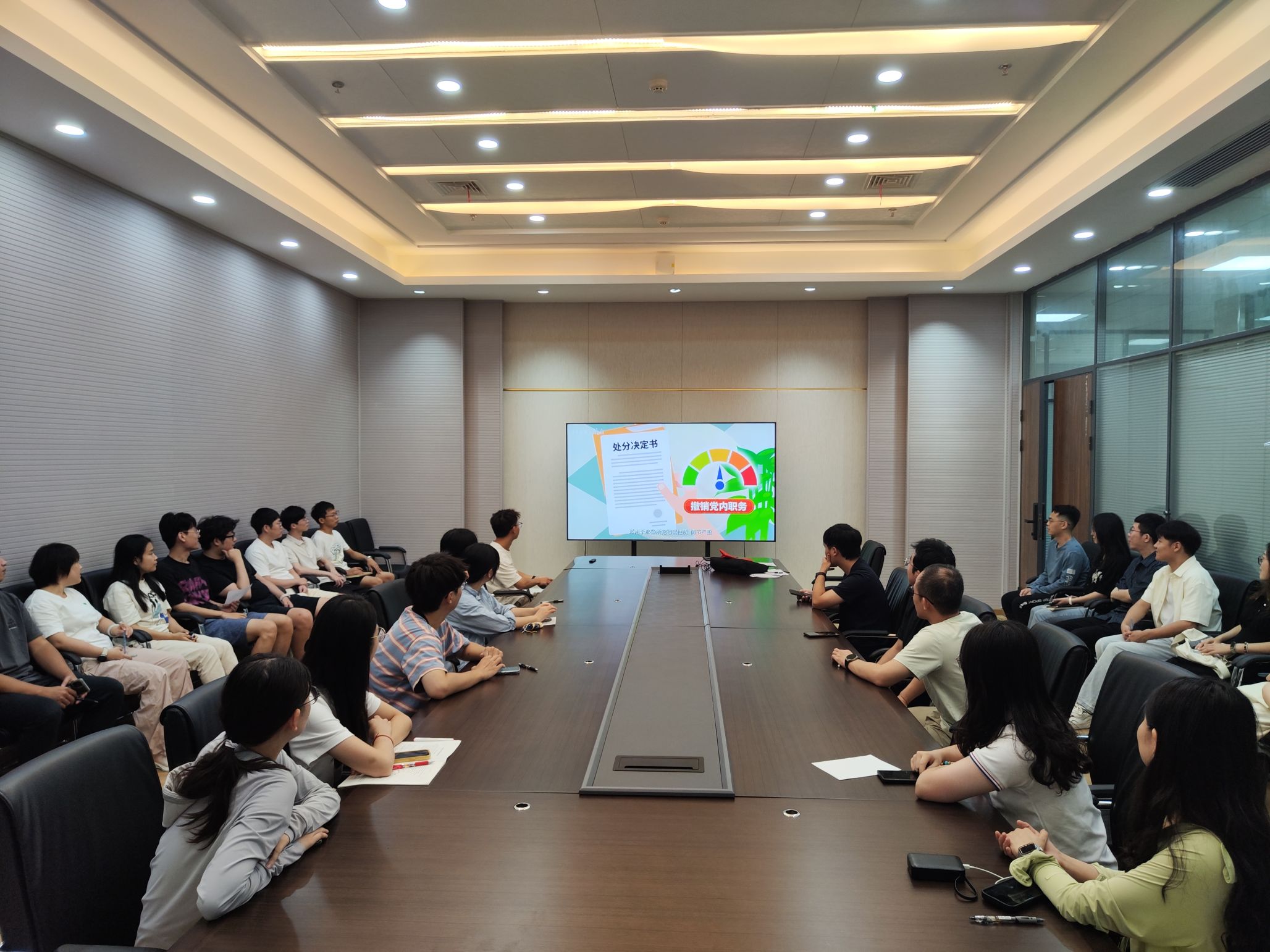 会议第二项,讨论接收胡瀚历、褚天佑、罗嘉欣同志为预备党员的事宜。首先,胡瀚历、褚天佑、罗嘉欣三位同志向党支部汇报对党的认识、入党动机、本人履历、现实表现等有关情况,表示将时刻以党员的标准严格要求自己,积极投身到科研和各项工作中去。由入党介绍人、支委会汇报考察情况,与会正式党员发表意见,认为三位同志入党动机端正,符合党员标准,同意接收为预备党员。随后由正式党员进行无记名投票,三位同志获同意32票,反对0票,弃权0票。由党支部书记张博轩宣读大会决议,同意接收胡瀚历、褚天佑、罗嘉欣同志为中共预备党员。