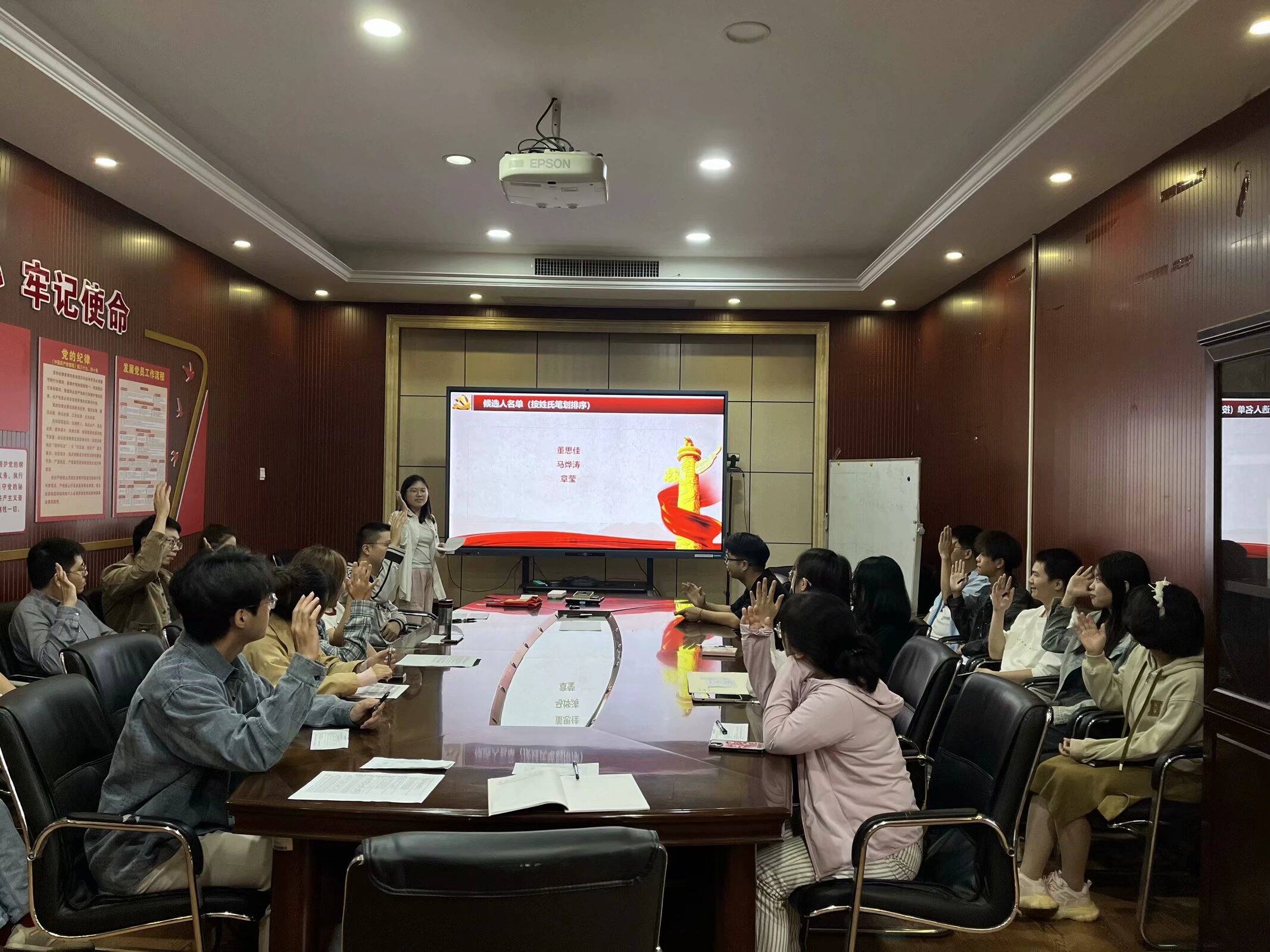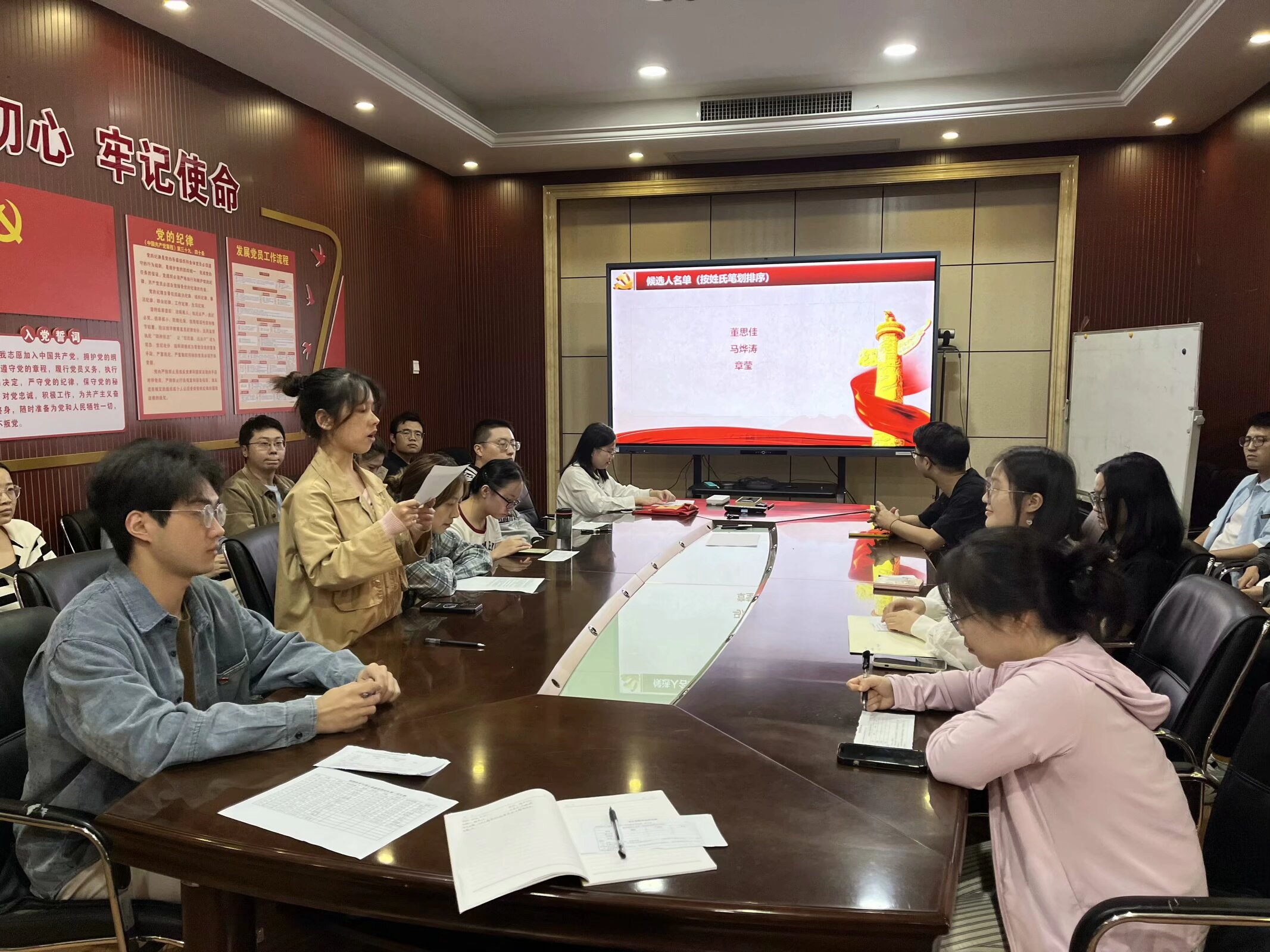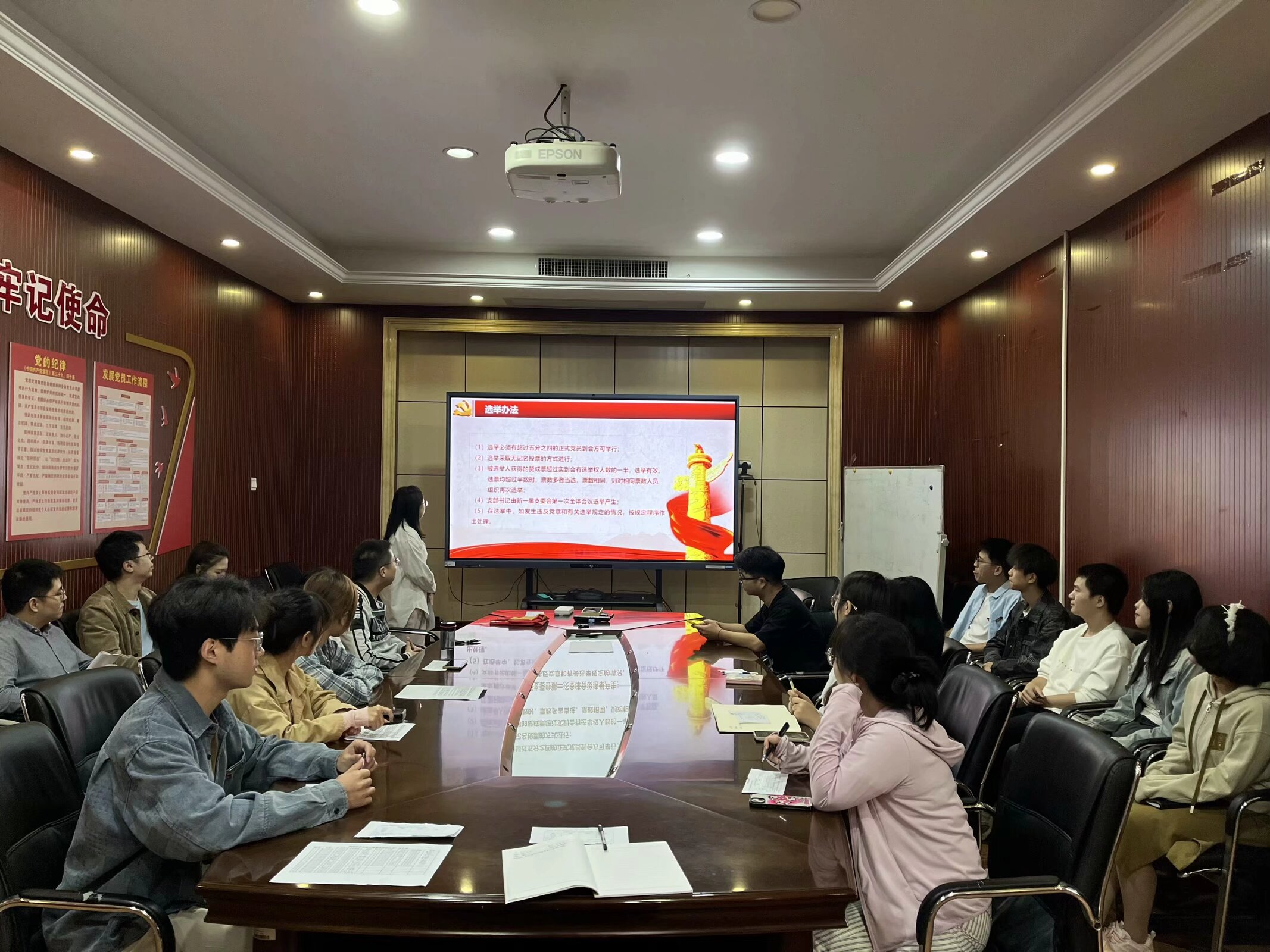 504会议室召开了支部委员调整大会。本次会议由党支部书记胡艺川同志主持,支部党员、预备党员参与此次会议。本次会议应到正式党员25名,实到20名,超过4/5,符合规定人数。