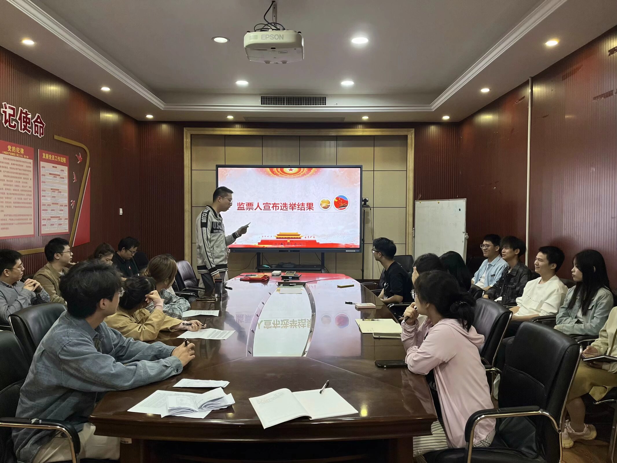 会议第二项,发放选票进行投票环节。本次投票为无记名投票,由庞博文同志担任监票人,卢婉婷同志担任计票人,大会共发出选票17张,收回选票17张,其中有效票17张,三位被选举人的赞成票均超过实到会有选举权人数的一半,选举结果有效。最终产生新一届支部委员会成员及分工结果如下: