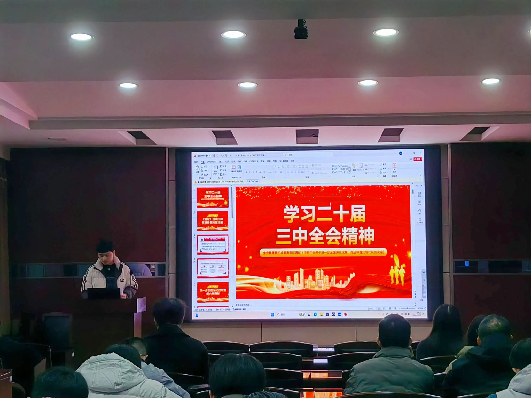 会议第二项,党支部书记江河组织开展学习贯彻党的二十届三中全会精神主题党日。全会最重要的成果是审议通过《中共中央关于进一步全面深化改革、推进中国式现代化的决定》,提出300多项重要改革措施,江河同志重点介绍了进一步全面深化改革贯彻六条原则、推进中国式现代化的战略重点、关于深化教育科技人才体制机制改革、关于党的领导和党的建设制度改革等方面的内容。