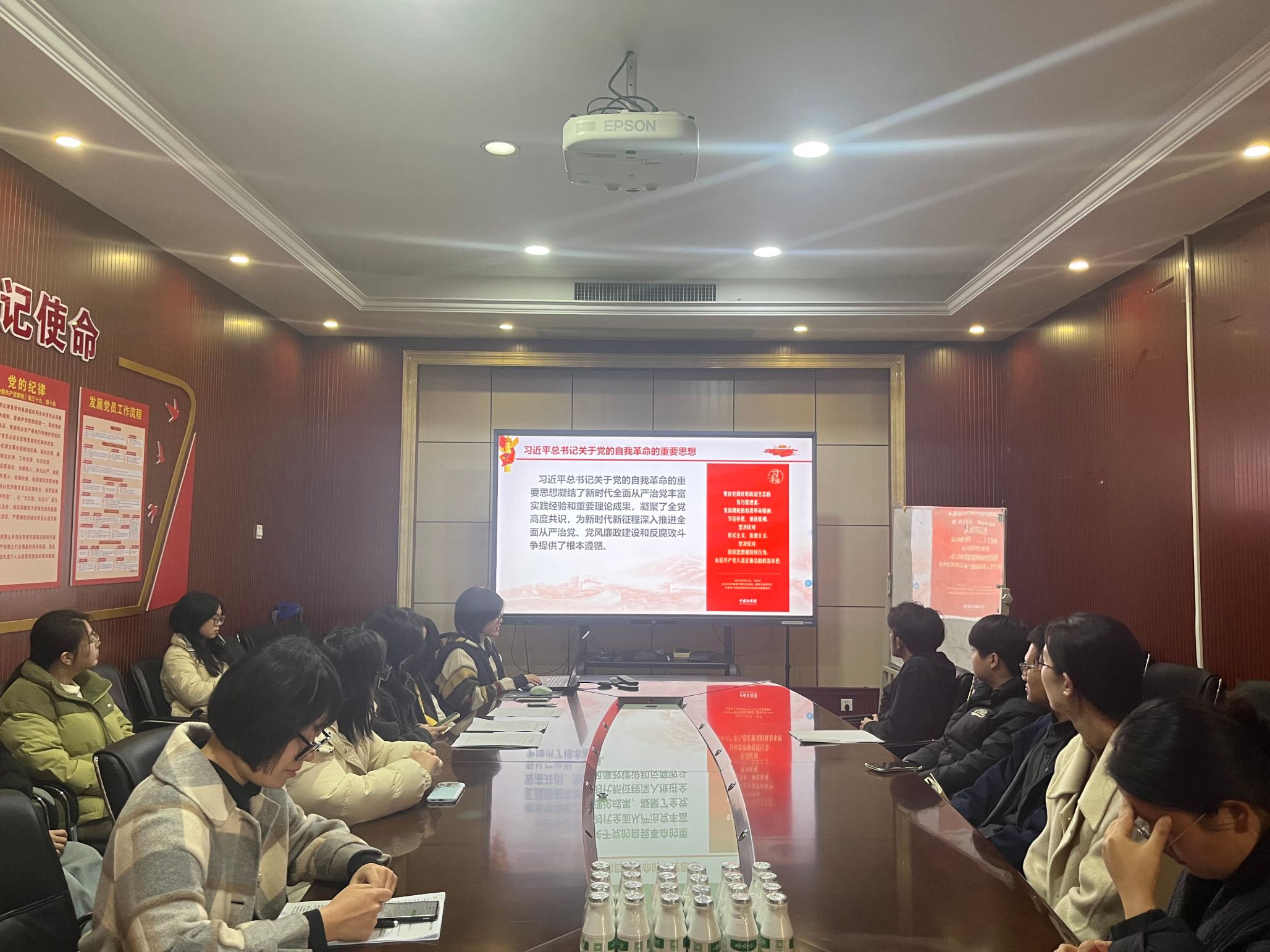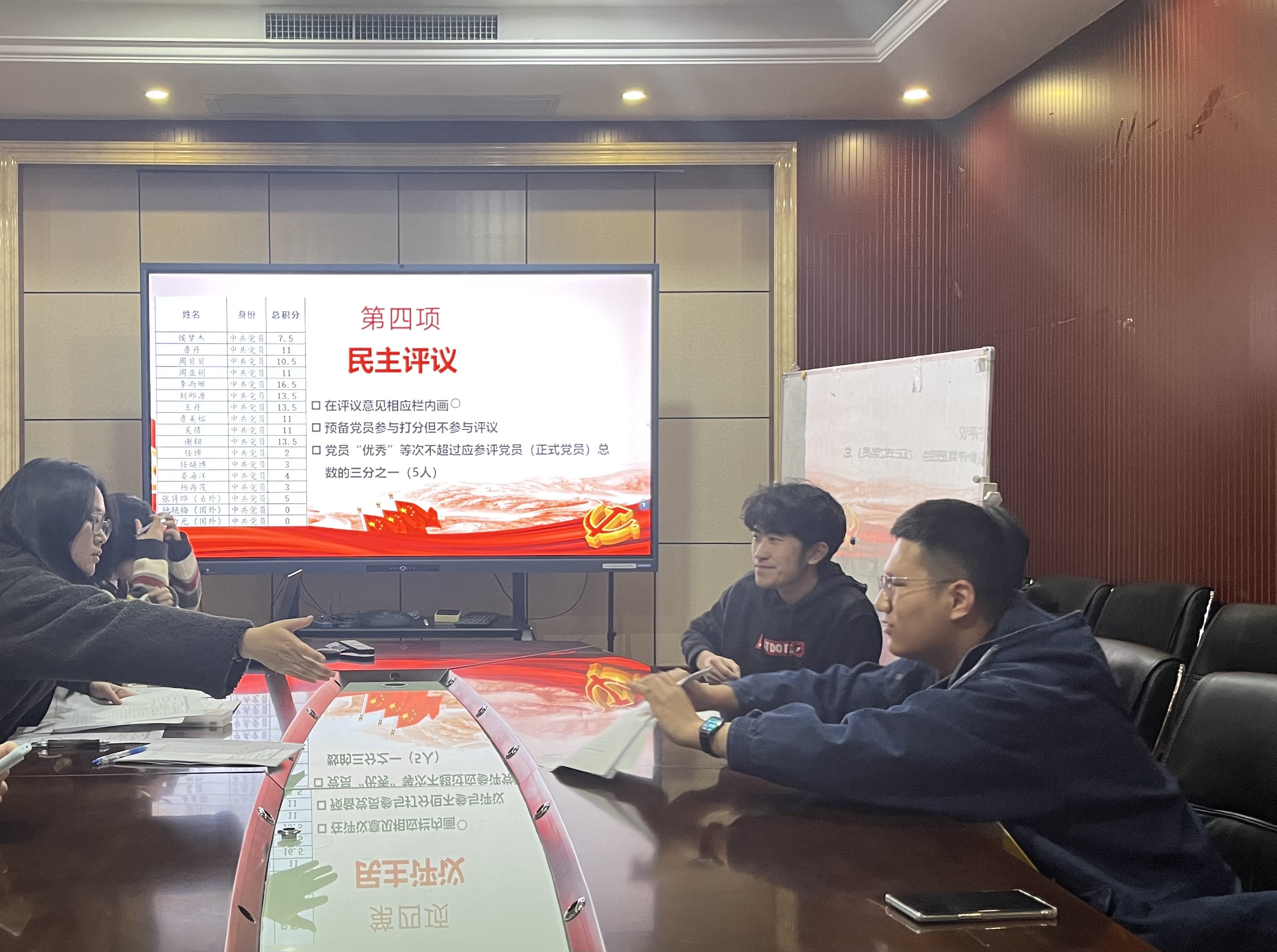 504会议室开展了民主评议会暨组织生活会。本次会议由党支部书记王丹同志主持,本次会议应到正式党员17名,预备党员3名;其中,实到会正式党员10人,预备党员2人。有表决权的到会人数超过应到会有表决权人数的半数,符合规定人数,可以开会。召开组织生活会前,支委会组织同志们回顾了党的二十届三中全会精神党课内容,将思想和行动统一到党中央决策部署上。