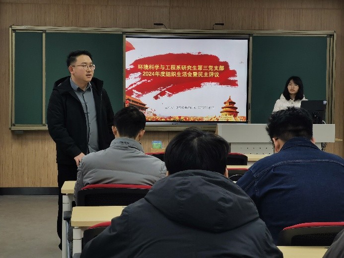 2025年3月7日下午16点30分,环境科学与工程系研究生第三党支部在工学部1教A103召开组织生活会暨民主评议会。本次会议由党支部书记许思敏同志主持,并邀请仝德富老师参加。本次会议应到正式党员39人;实到正式党员21人(其中5位毕业生未转出组织关系,1位同学出国,3位同学出差),有表决权的到会人数超过应到会有表决权人数的2/3,符合规定人数,可以开会。