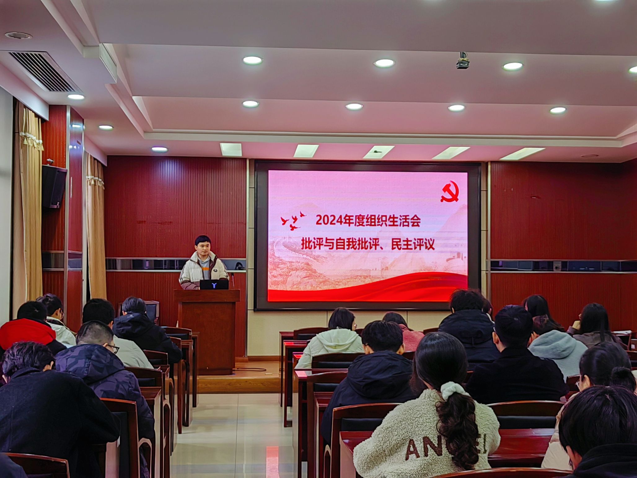 会议第一项,召开组织生活会。全体正式党员对标党章要求,深入开展批评与自我批评,结合科研攻关、服务群众、理论学习等方面查摆问题,剖析思想根源,并提出具体整改措施。随后开展民主评议,参评的39名正式党员中,江河、张博轩、王雨晨、冉煜熙、闵万坤、邹冰欣、陈若璇、高雨婷、南方、谢天、李东益、李昂等12名同志获评“优秀”等次。