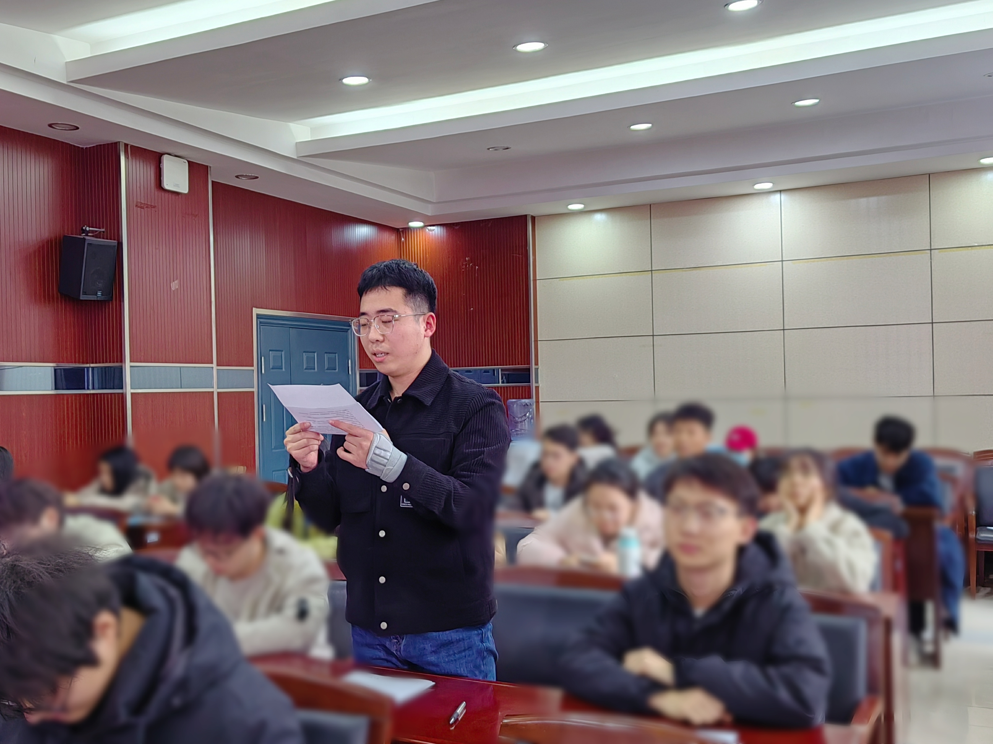 会议第二项,讨论接收谢光磊、王睿、李余郁同志为预备党员的事宜。首先,谢光磊、王睿、李余郁三位同志向党支部汇报对党的认识、入党动机、本人履历、现实表现等有关情况,结合个人科研实践与志愿服务经历,深刻阐述对党的认识与初心使命。入党介绍人及支委会汇报培养考察情况,与会正式党员发表意见,认为三位同志政治立场坚定、综合素质过硬,符合党员标准,同意接收为预备党员。经正式党员无记名投票,三位同志获同意37票,反对0票,弃权0票。党支部书记江河宣读大会决议,同意接收谢光磊、王睿、李余郁同志为中共预备党员。