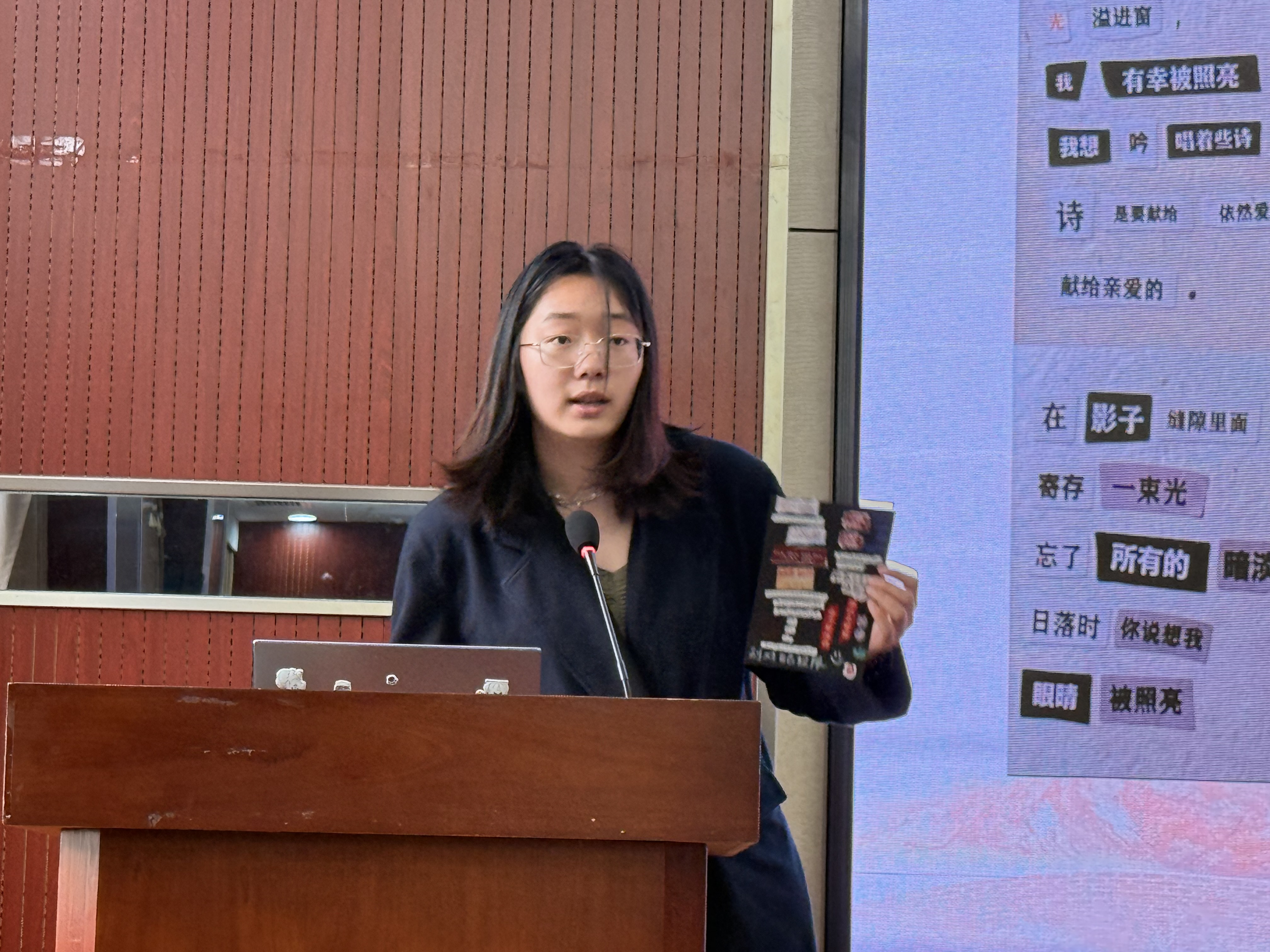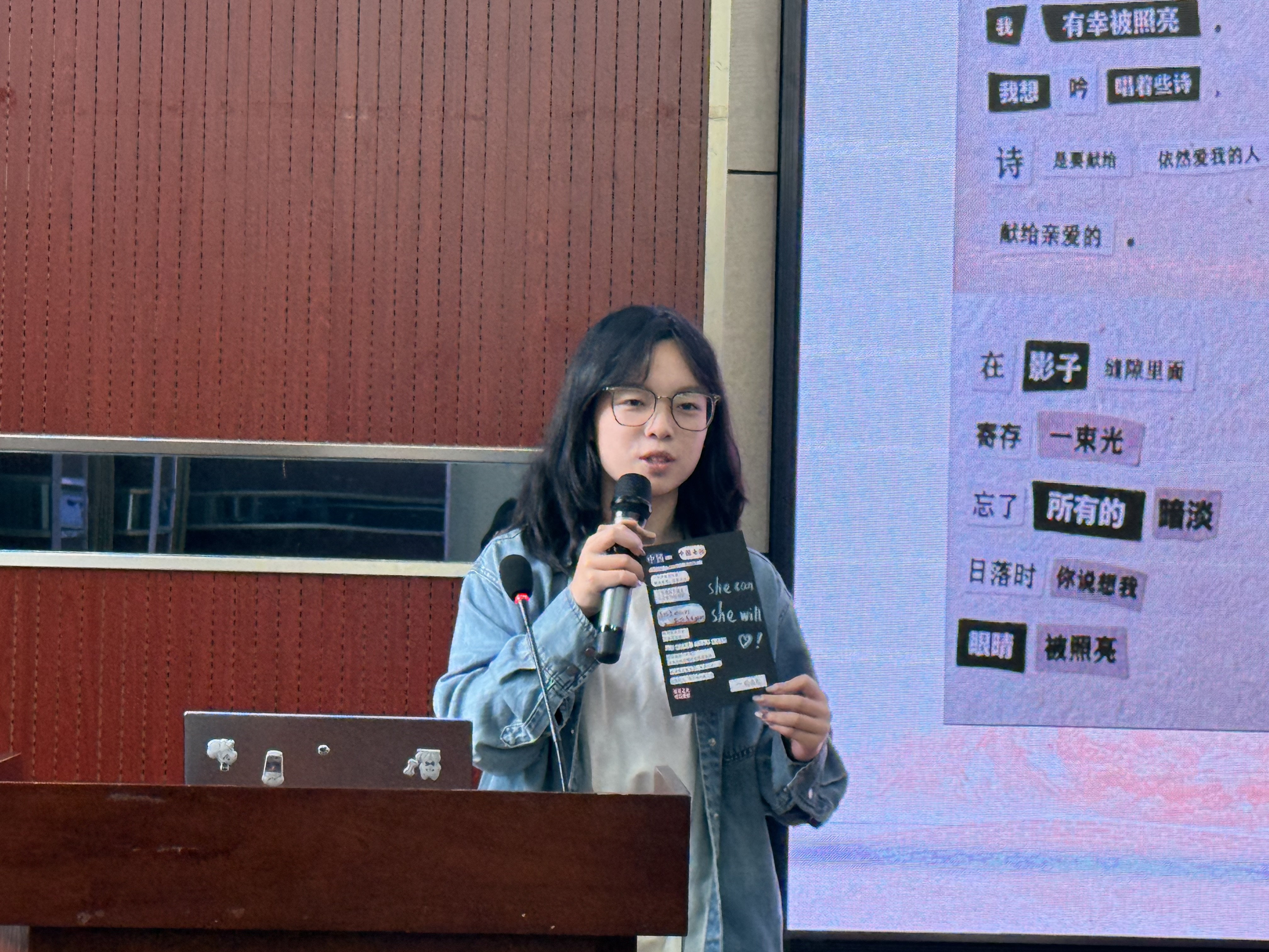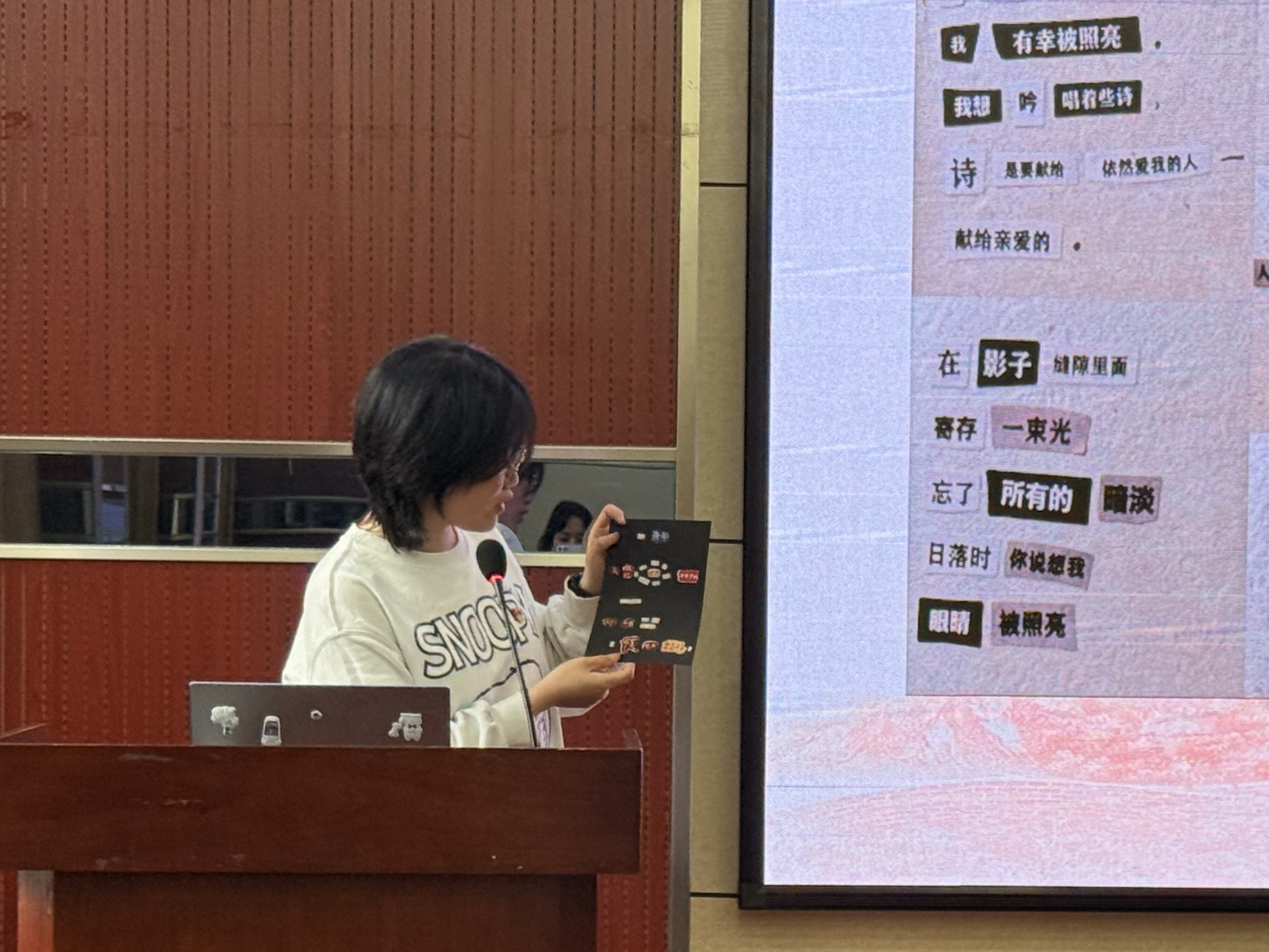 在剖析经典环节,任博同志对三篇经典红色诗篇进行了深入解读。她通过朗诵《七律·长征》,展现“万水千山只等闲”的革命豪情;通过诠释《我爱这土地》,传递“为什么我的眼里常含泪水”的赤子之心;通过诵读《可爱的中国》,再现先烈对“欢歌将代替悲叹”的美好憧憬。这三部跨越时空的经典,生动展现了共产党人的精神谱系,让红色基因在新时代绽放光芒。