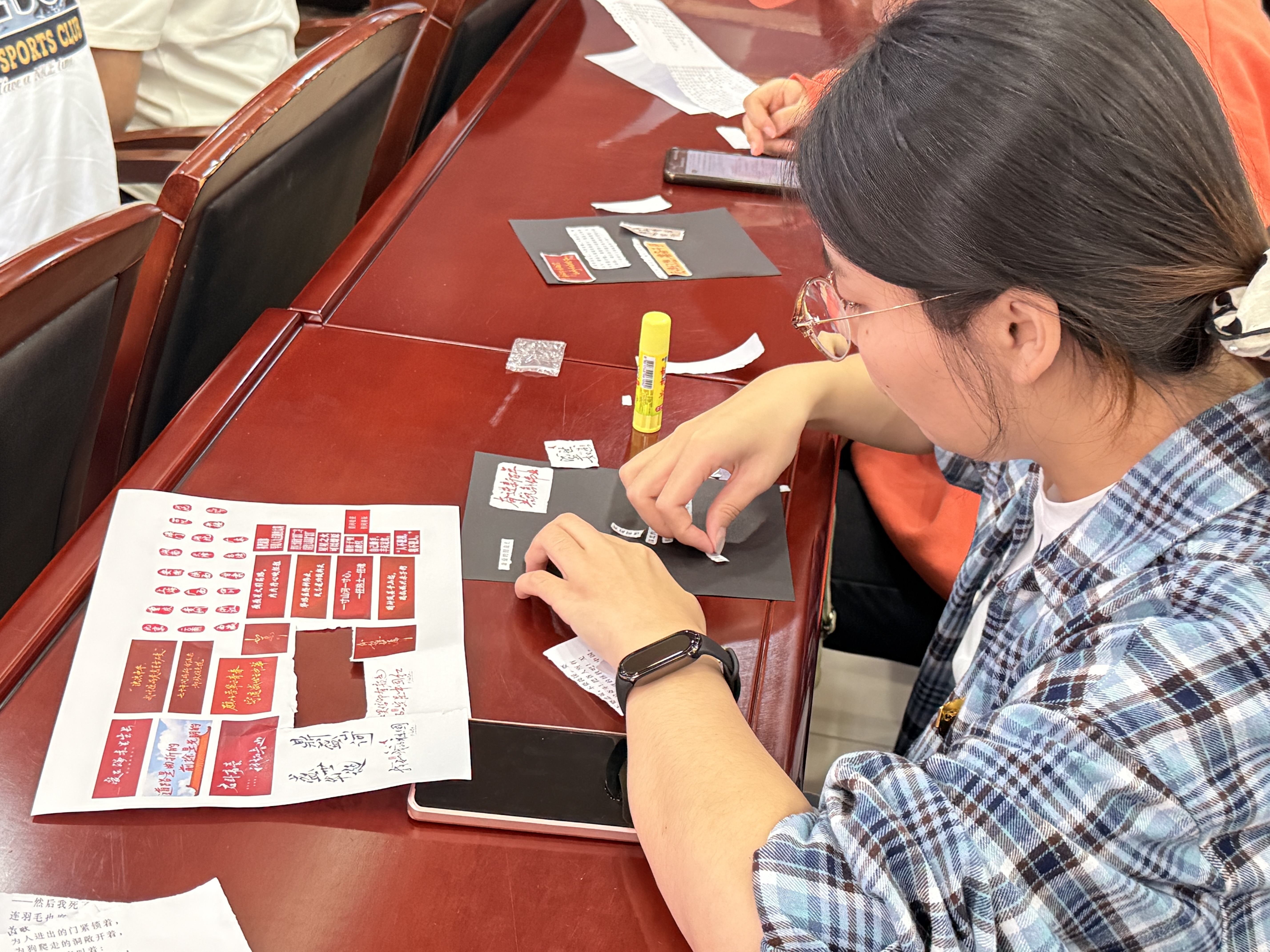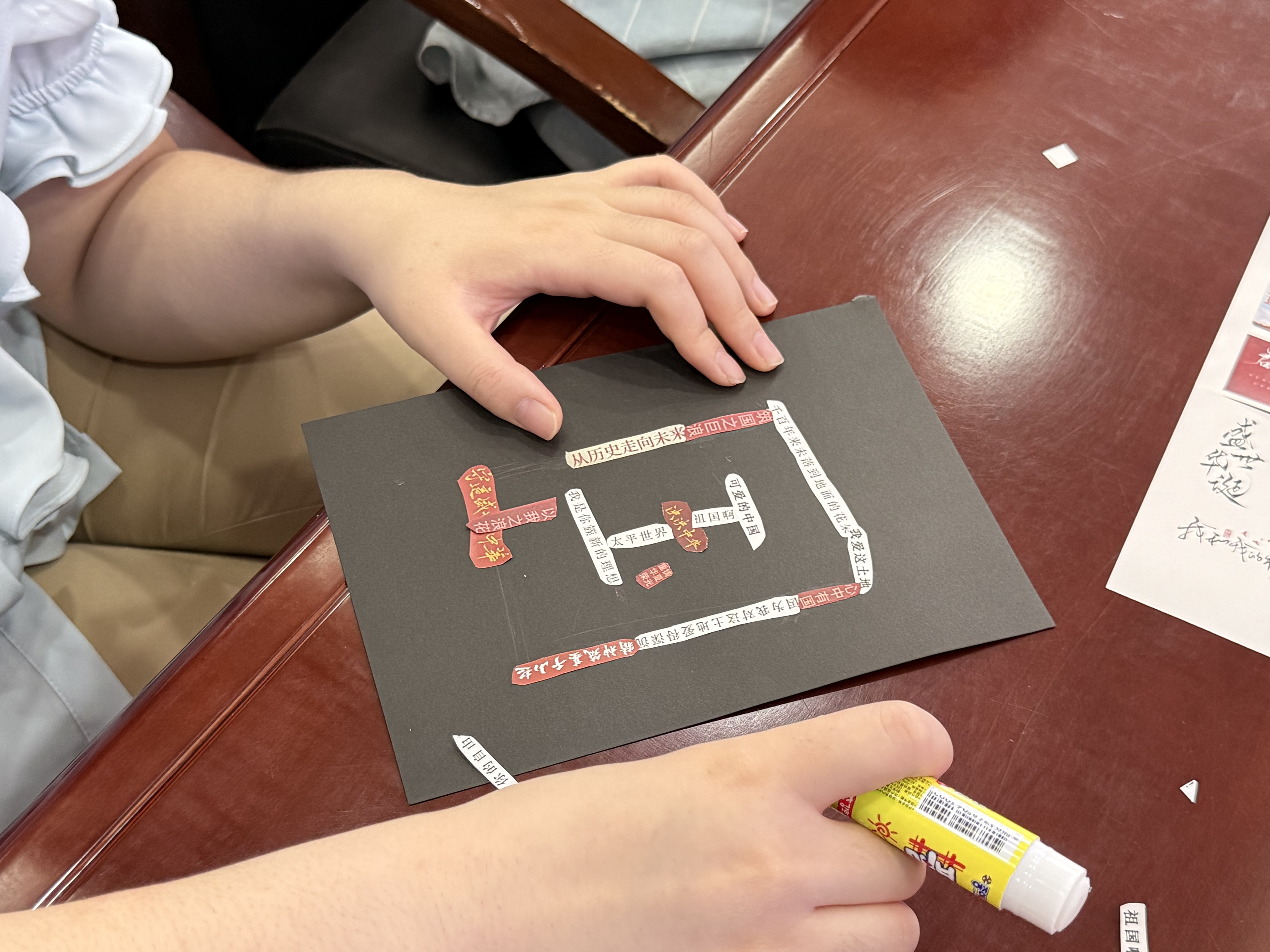 在创意拼贴环节中,支部同志以经典红色诗句和革命标语为创作素材,运用剪裁、拼贴、重构等艺术手法,完成了一幅幅富有创意的拼贴作品。这些作品以独特的艺术语言诠释了信仰的力量,通过视觉化的表达方式,让红色文化焕发新的生机。动手操作的过程不仅激发了同志们对红色诗歌的浓厚兴趣,更让大家在轻松愉悦的创作氛围中深切感受到红色经典的永恒魅力。
