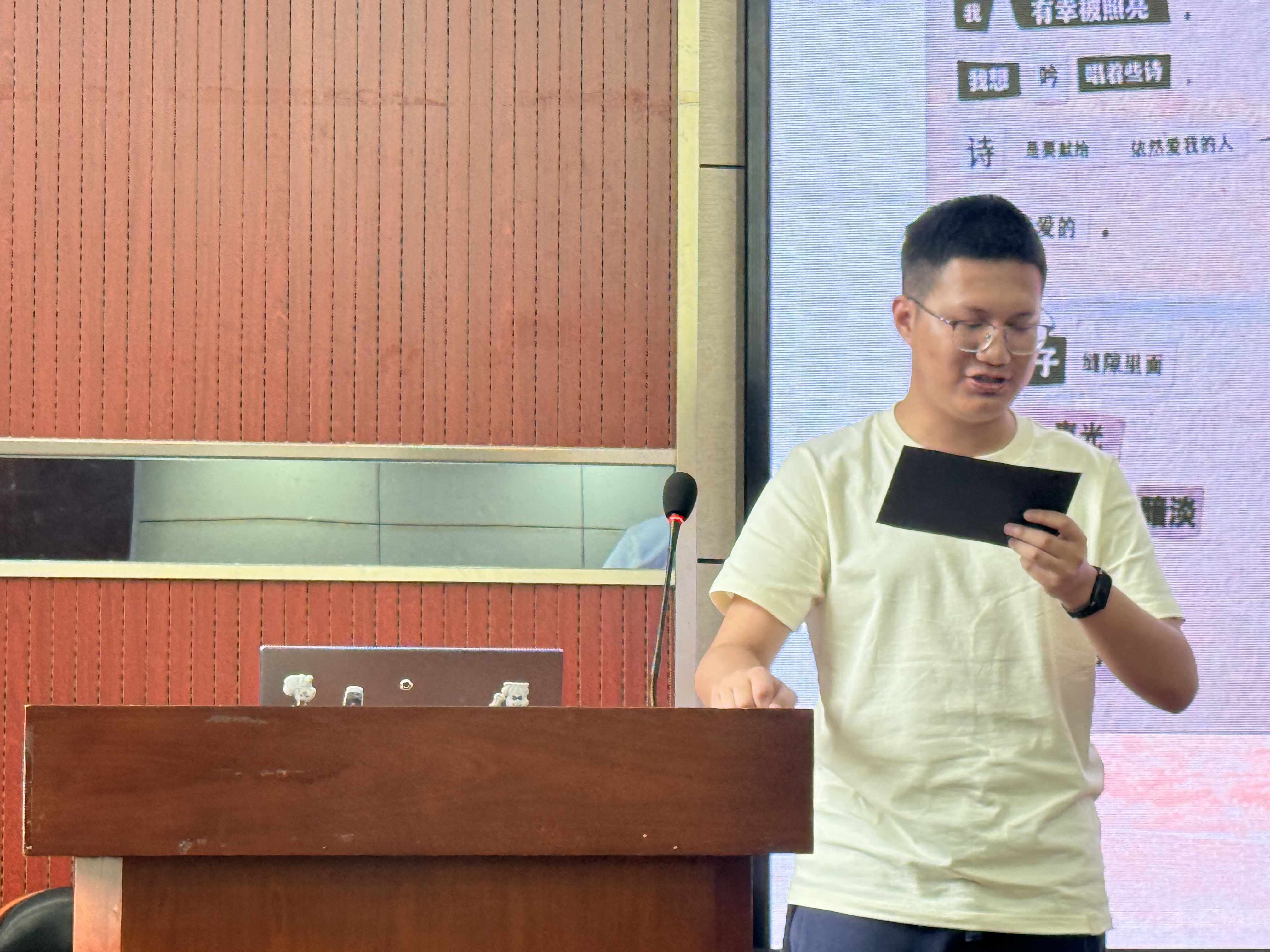 之后,任博同志带领大家回顾了中国共产党不同历史时期的经典诗篇。从新民主主义革命时期“砍头不要紧,只要主义真”的铮铮铁骨,到社会主义革命和建设时期“敢教日月换新天”的豪迈誓言;从改革开放新时期“春天的故事”里激荡的奋进旋律,到新时代“请党放心,强国有我”的青春强音——这些饱含信仰力量的诗歌,不仅记录着共产党人的初心与使命,更构筑起中华民族砥砺前行的精神丰碑。