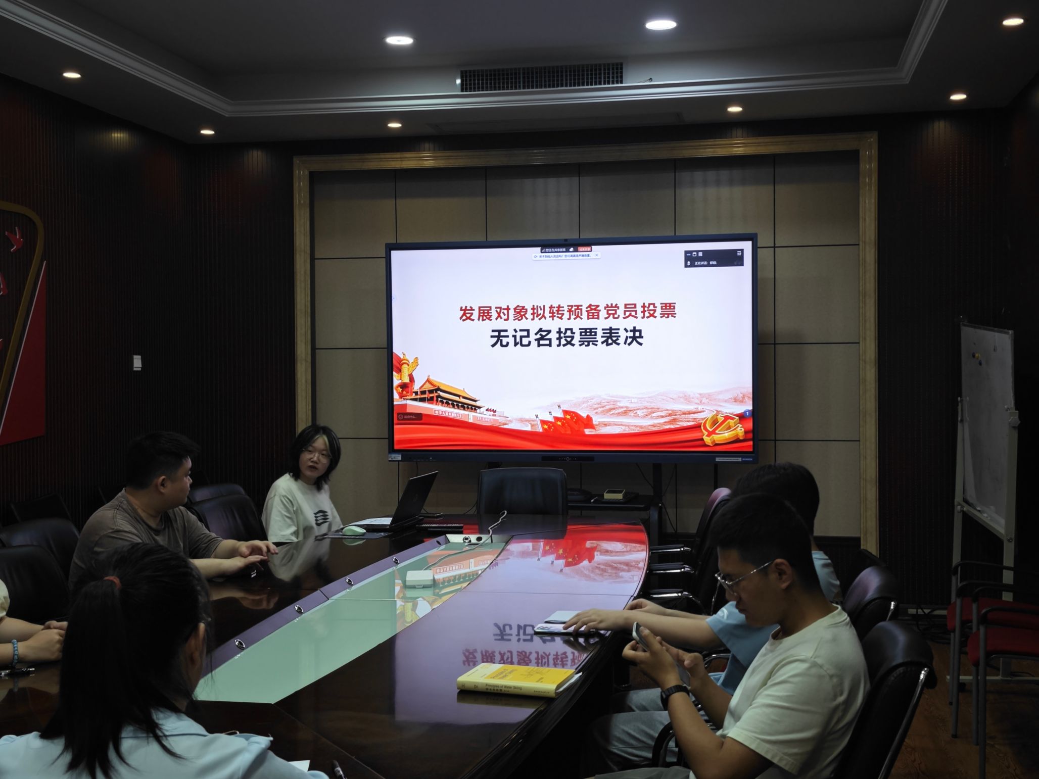 会议第二项,确认发展对象拟转预备党员名额的投票。李哲、王忠洋、阳旺同志分别汇报近期的思想、工作情况。经与会正式党员投票,李哲15票,阳旺10票,王忠洋9票,确定李哲和阳旺同志拟转为预备党员。