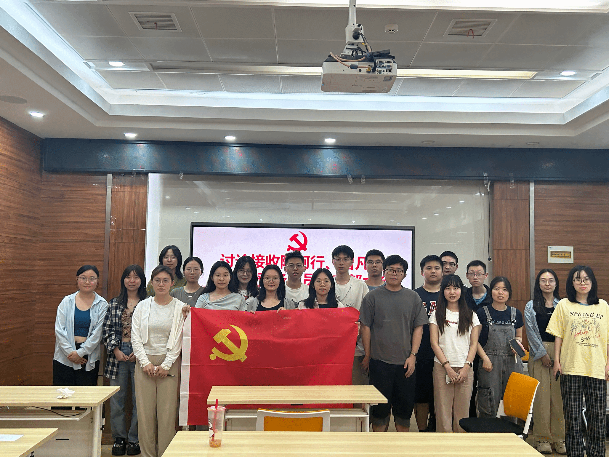 429会议室开展支部大会,讨论接收陈柯行、曾凡义和刘轩育同志为预备党员及六月主题党日活动,本次大会由支部书记江乐怡同志主持。