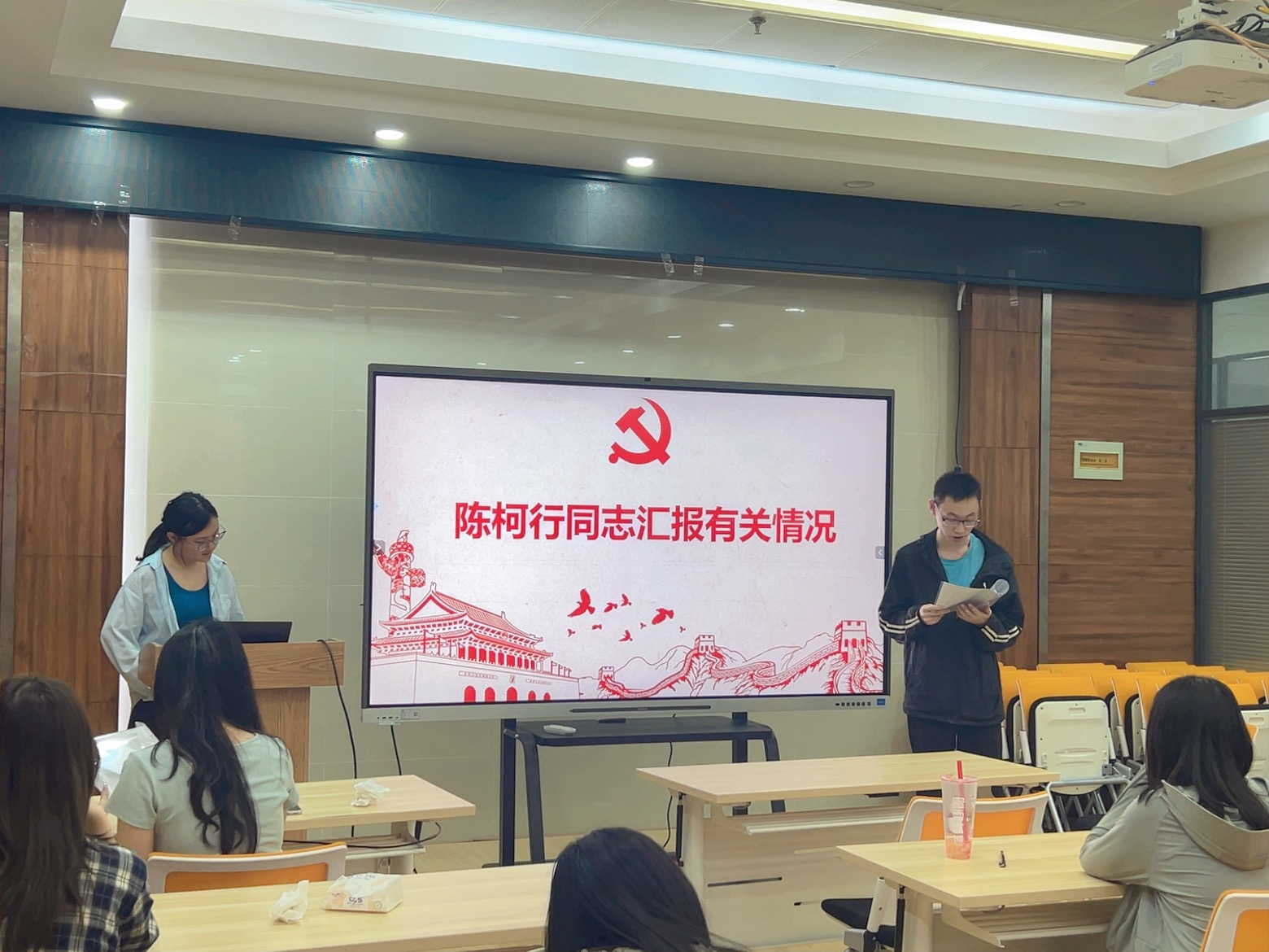 陈柯行同志汇报了自己在积极分子与发展对象期间思想、生活与学习方面的收获与进步,阐明了自己进一步发展的意愿。陈柯行同志的入党介绍人江乐怡同志和张心宇同志介绍了其在积极分子考察阶段的表现,同意接收其为预备党员;之后,牛羽庆同志代表支部委员会报告审查情况,与会党员成婷同志和陈舒颖同志发表意见,对发展对象是否符合党员条件进行充分讨论,并依次对发展对象能否入党进行无记名投票表决。最终收回的19张表决票均同意接收陈柯行同志成为预备党员,赞成票超过参与表决人数的一半,本次表决有效。