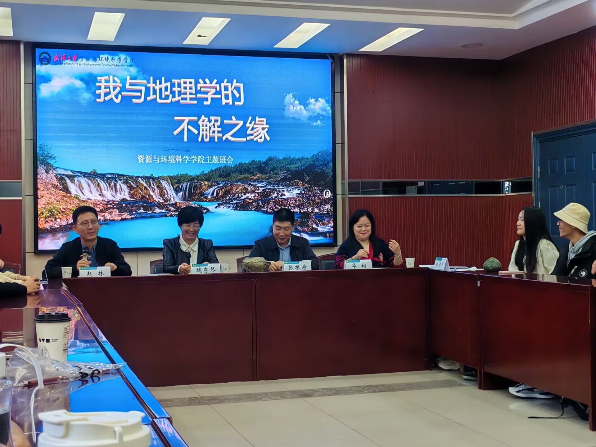 举办了一场以“我与地理的不解之缘”为主题的班会暨主题党日活动。学院副院长、关工委主任魏秀琴,退休教授张根寿,学院地理科学与国土资源系副主任赵林,院团委书记华翔,以及2024级地理科学拔尖班、2025级地理科学弘毅班本科生和地理科学与国土资源系研究生第五党支部成员共30余人参与本次活动。