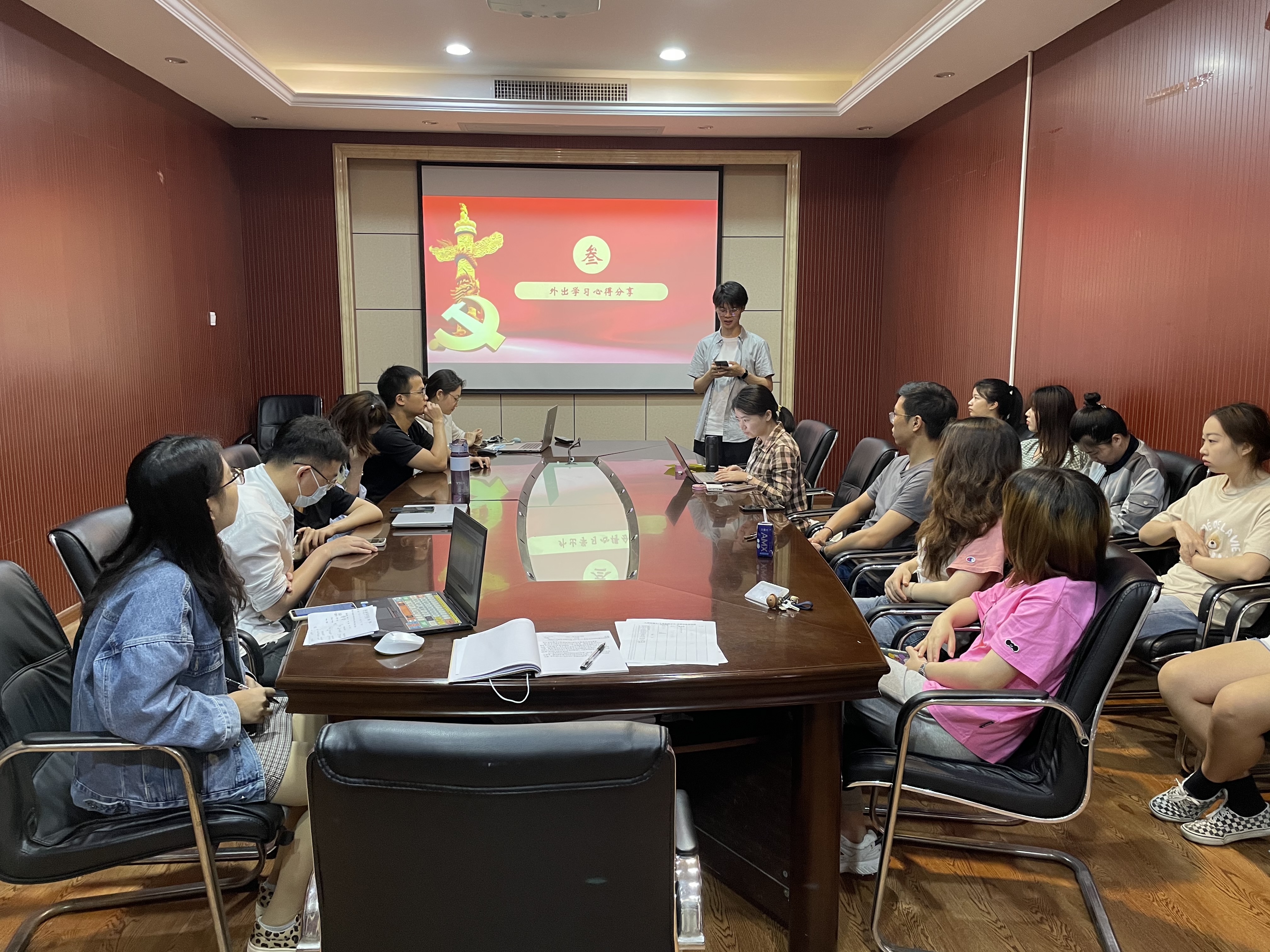 会议第三项,由支部宣传委员苏会钰跟大家进行上一次党支部活动红色参观心得分享。苏会钰提到参观活动中通过探访爱国主义教育基地,让支部成员们感受老一辈革命家和共产党员不畏艰险、献身理想的革命精神,提高自己全心全意为人民服务的爱国精神。会议最后,由支部书记杨晨同志进行总结,他表示,参观活动以及本次主题生活会让大家了解到吃苦耐劳、艰苦奋斗在当今社会仍是必要的,我们要继续为祖国发展艰苦奋斗,为人民的幸福而努力,弘扬党的优良作风,学习党的重要思想。