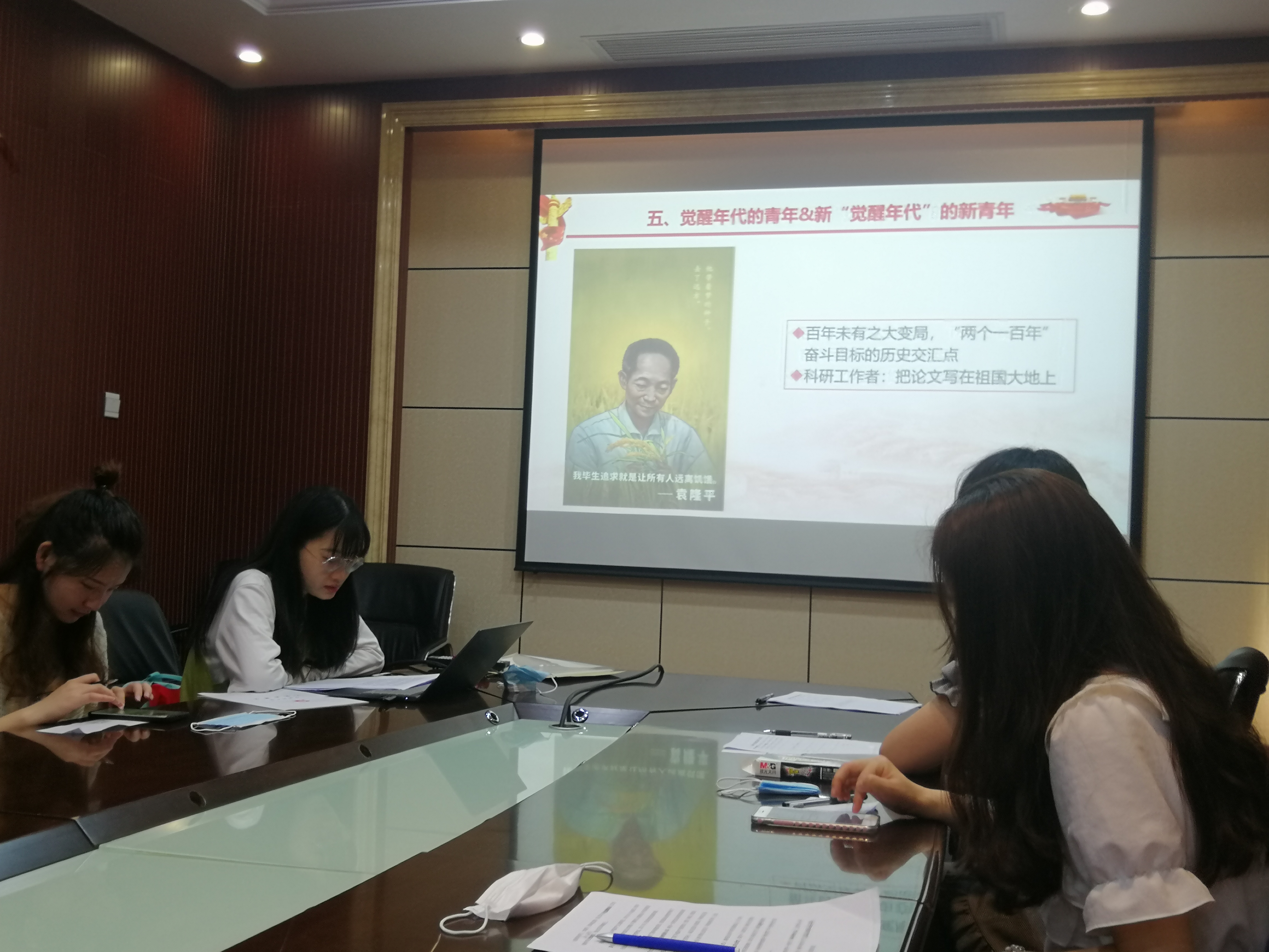 会议第二项,学习《中国共产党简史》篇章一:中国共产党的创立和投身大革命的洪流。党支书邹钰彤以《觉醒吧,新青年》为题进行了党史宣讲,带领大家探寻了1915-1921年中国共产党创建之前中国青年们的觉醒年代,分析青年知识分子是如何选择了马克思主义,如何选择了走社会主义道路的;号召当代的新青年更应该担起时代责任,志存高远,接续先辈们的拼搏精神,充当新时代的开路先锋。