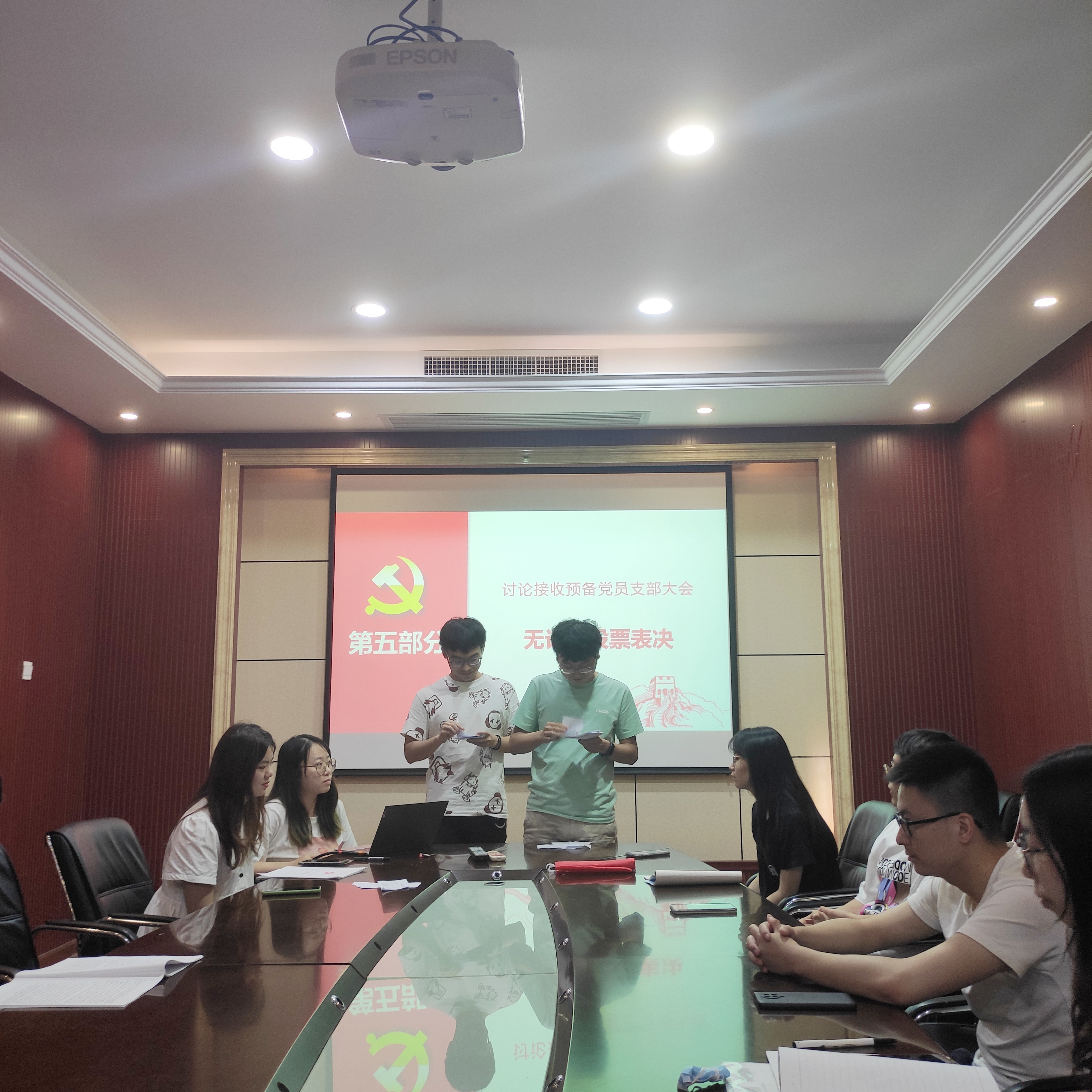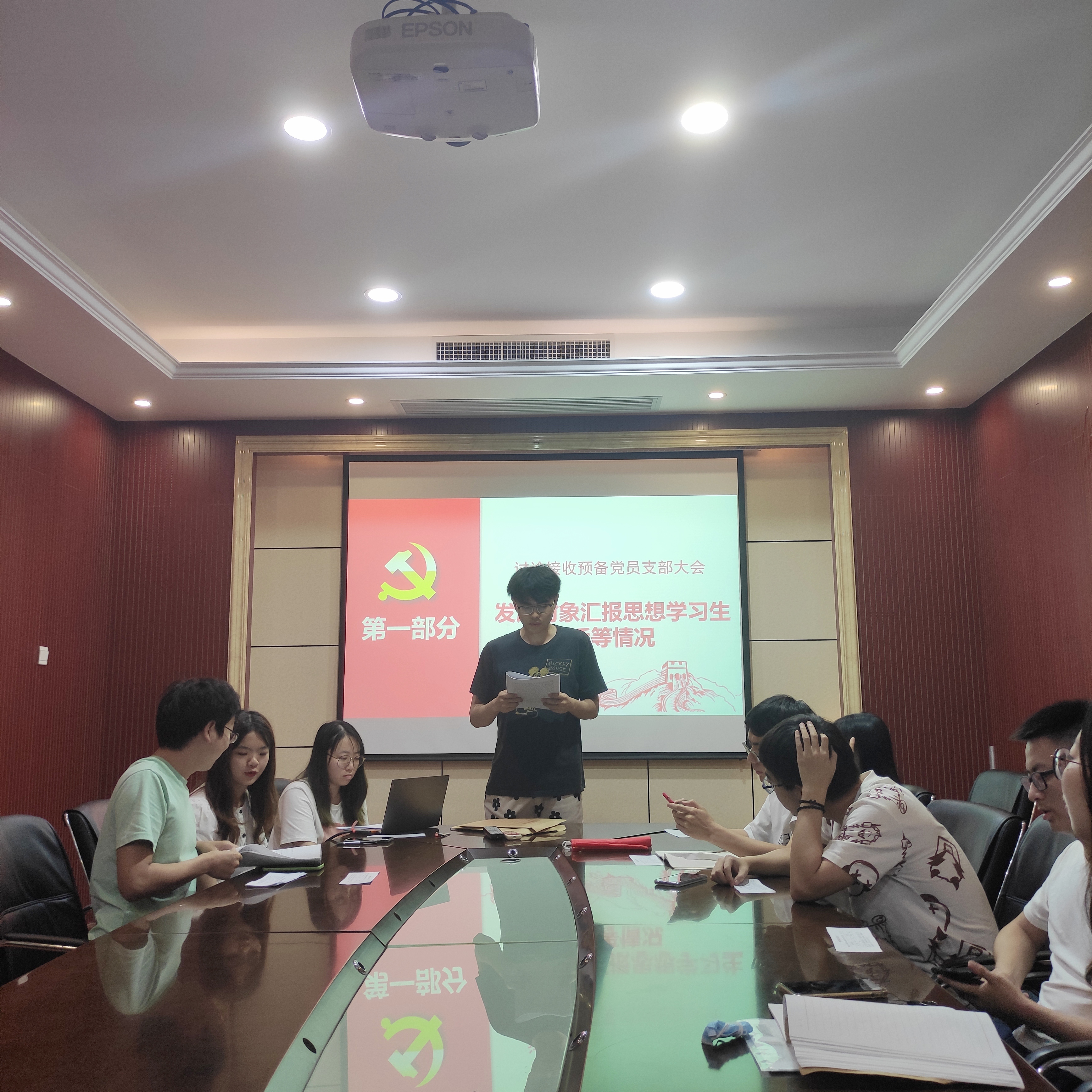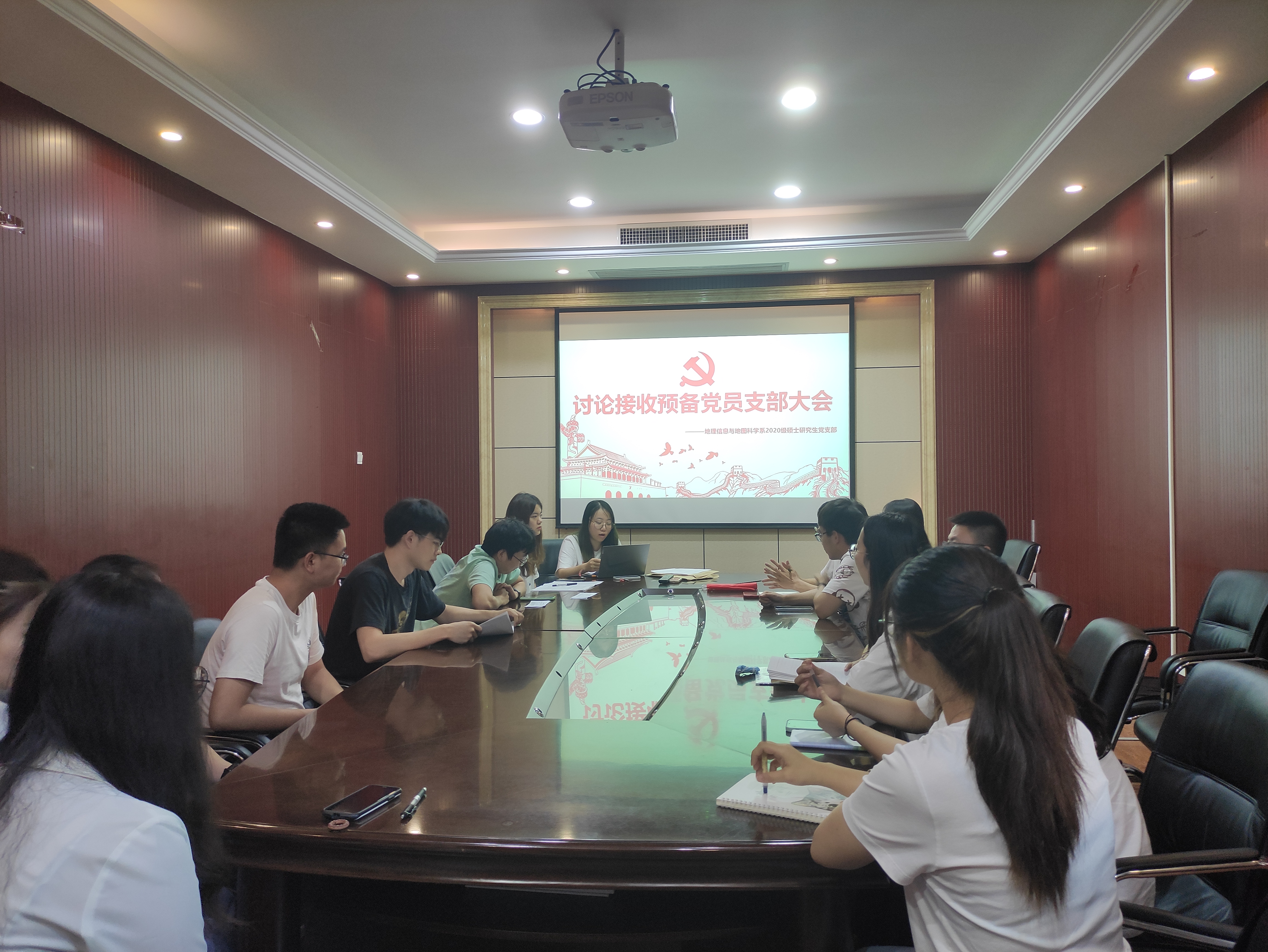 2021年6月28日周一下午四点,地理信息与地图科学系2020级硕士研究生党支部讨论接收预备党员支部大会暨“奋斗百年路 启航新征程”党课学习会议于院办504召开,会议讨论了发展对象肖一心、唐泽瑞同志的入党问题。本次会议由支部书记包雨睿同志主持,本次会议应到正式党员14人,预备党员6人;实到正式党员12人,预备党员2人。