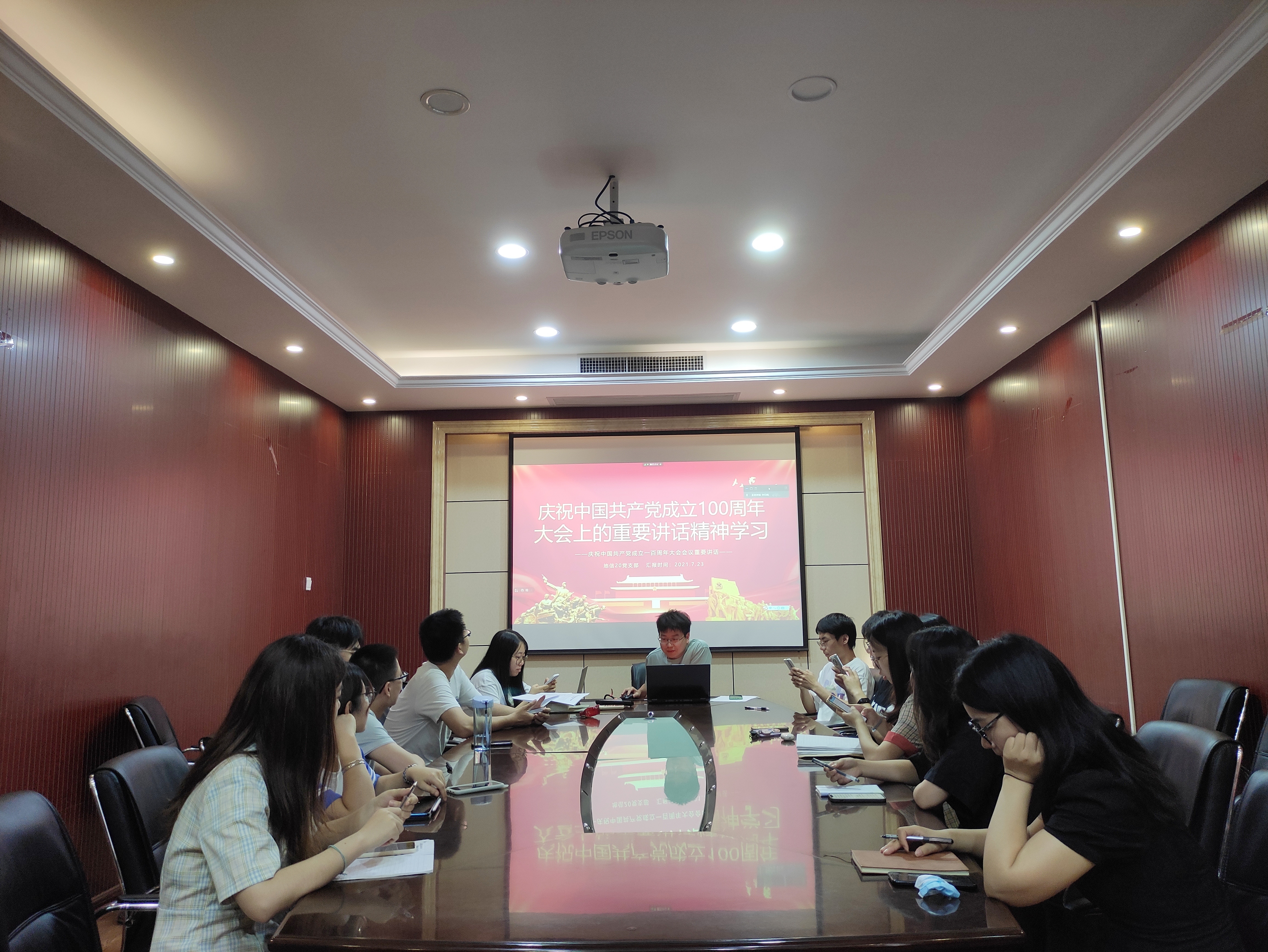 会议第一项,支部组织委员李石标同志带领支部成员学习《习近平总书记在庆祝中国共产党成立100周年大会上的重要讲话》。李石标同志从回顾中国共产党百年光辉历程、诠释中国共产党的伟大建党精神、展望中华民族伟大复兴九个必须)、寄语广大青年、号召全体中国共产党员五个方面传达了此次重要讲话精神。