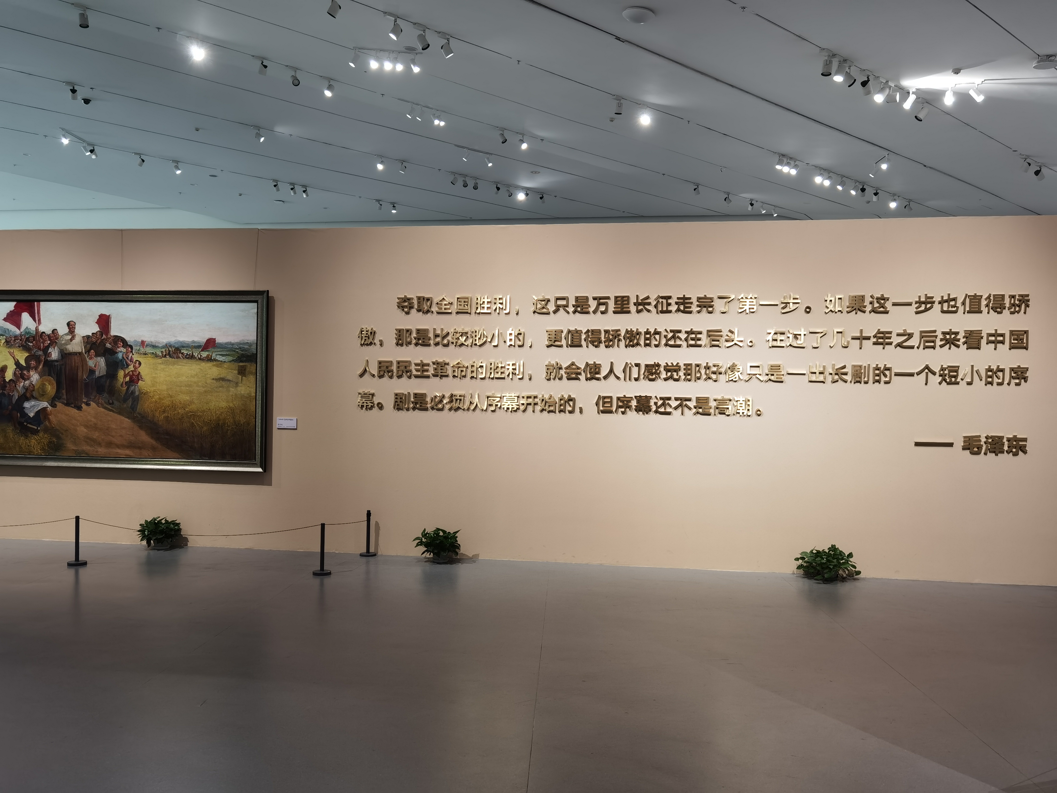 党支部书记石昊同志简要介绍展览情况,讲到毛泽东是近代以来中国最伟大的爱国者和民族英雄,是领导中国人民彻底改变民族命运和国家面貌的一代伟人,他身上有一种豪迈叫做“红军不怕远征难,万水千山只等闲”。我们青年风华正茂,更要有不畏艰难的精神。