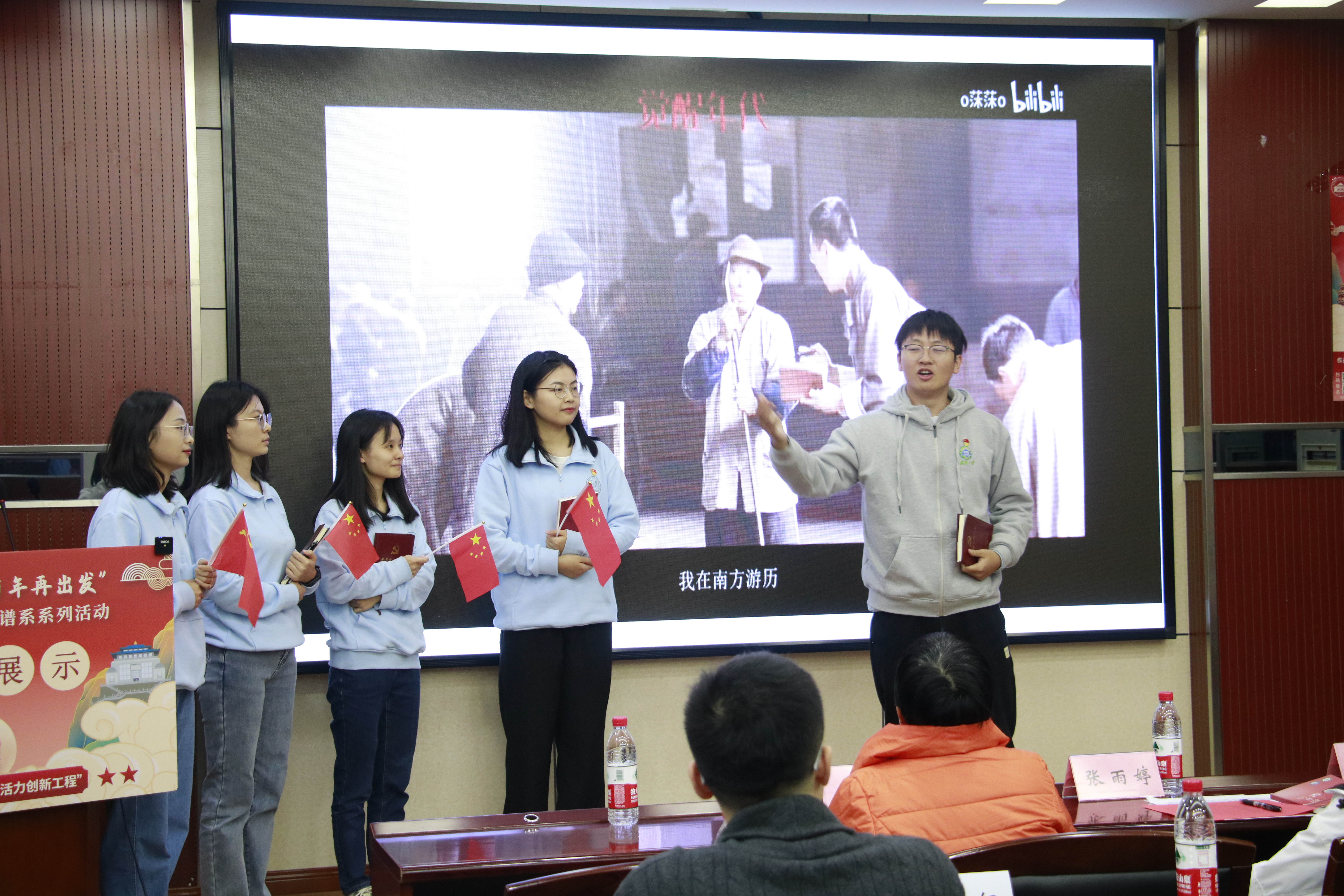接下来第六组资环学院的队伍,用电子地图的形式为我们讲述了在鄂抗战老兵的故事,感人至深,备受震撼;第七组是来自文学院的队伍,以诗朗诵的方式传承精神谱系,谱写伟大《诗篇》;第八组是来自电气与自动化学院的苏大智,怀着浓厚的乡土情结,讲述来自家乡的伟大红旗渠精神,“一面红旗代代传,太行明珠耀神州”;最后一组是由电气与自动化学院带来的诗朗诵“我是一艘船”,巧妙的灯光设计和深情的朗诵交相辉映,在掌声四起、生动热烈的现场氛围中迎来了作品展示的尾声。