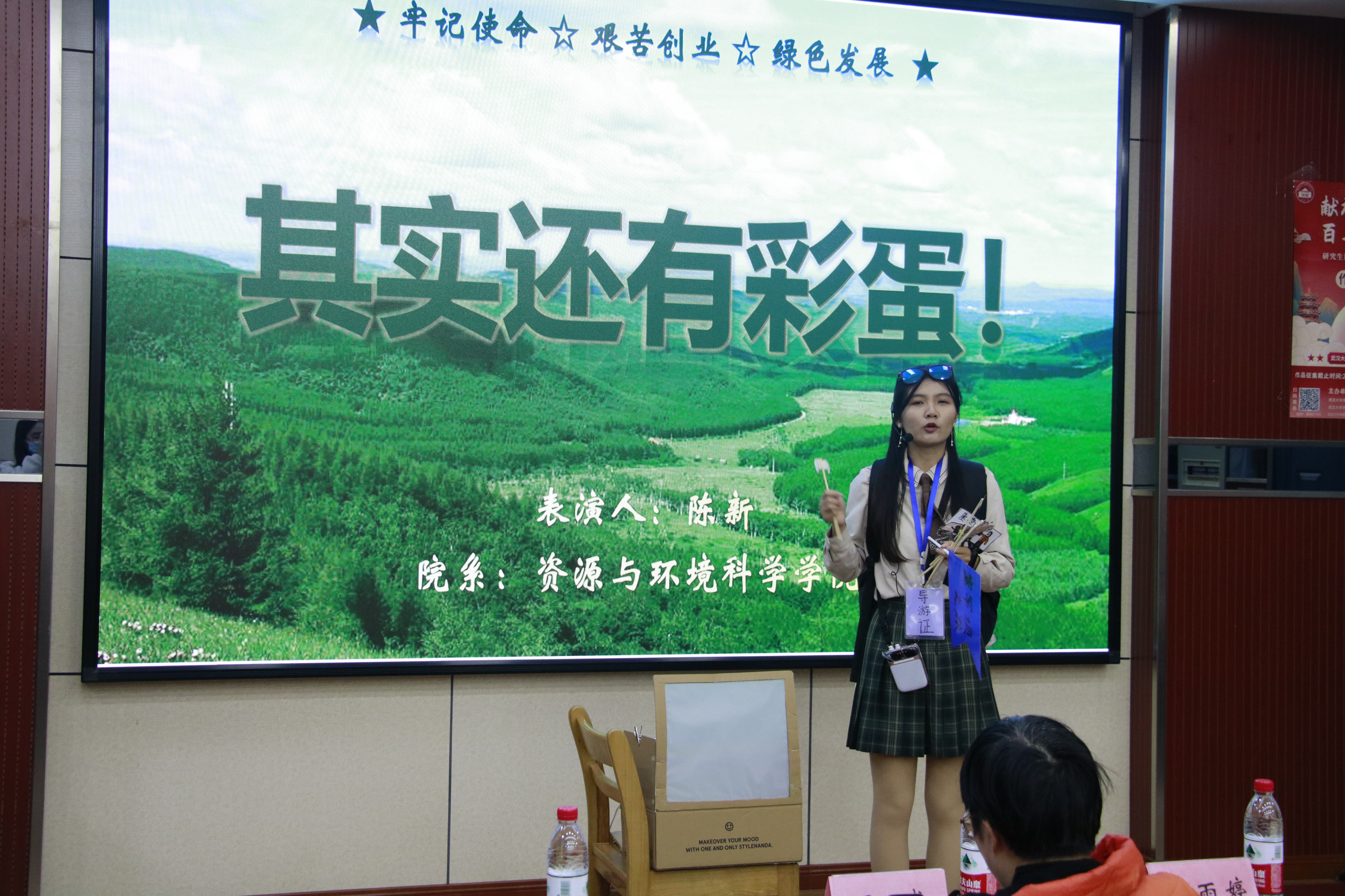紧接着,参赛队伍依次上场进行作品展示。马克思主义学院的“好运来”队,以朴实的语言和饱满的情绪为我们带来了一场精彩的“红色珞珈”演讲;资环学院的队伍,用一组精美的地图作品从时空维度展现了中国共产党人伟大精神谱系;工业科学研究院的队伍用精彩的演讲带领观众走进一场跨越时空的对话,身临其境感受“井冈山精神”;生命科学学院带来的情景剧《水稻候鸟助兴农》,生动演绎了“追求真理、严谨治学、淡泊名利、潜心研究、集智攻关、团结协作”的科学家精神,也将活动现场的氛围推向高潮;资环学院陈新同学,采用自导自演的方式带领我们走进塞罕坝之旅,感受了“荒原变林海”的塞罕坝精神。