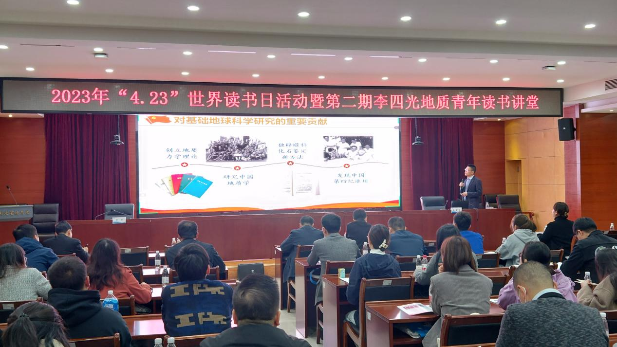 党委委员、副院长朱联东教授带领学院研究生党员骨干参加省地质局团委联合长江委直属机关团委、省机关事务局团委、省农科院团委开展的以“学思想 享书香 当闯将 建新功”为主题的“4·23”世界读书日暨第二期李四光地质青年读书讲堂活动。