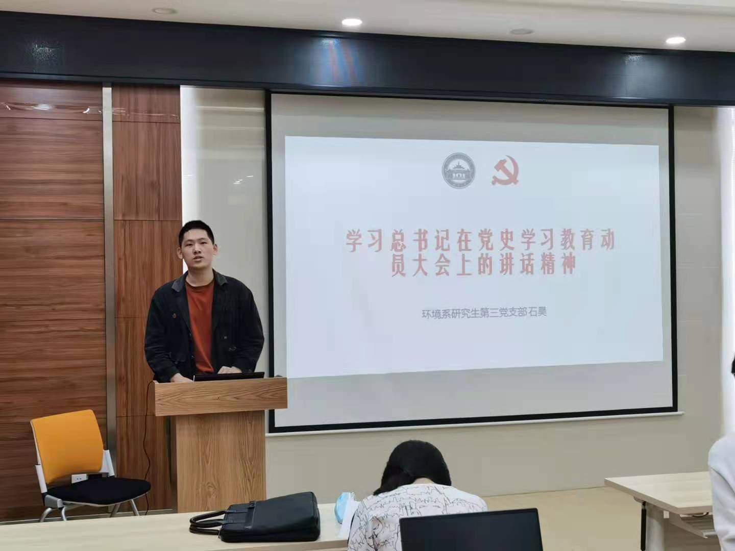 老王论坛 环境科学与工程系研究生第三党支部2021年4月28日14:00于老王论坛 电脑城429会议室举行了“思源论坛”交流分享会暨党史学习教育,本次活动由党支部组织委员石昊同志主持,参会人员包括党员、发展对象和积极分子。
