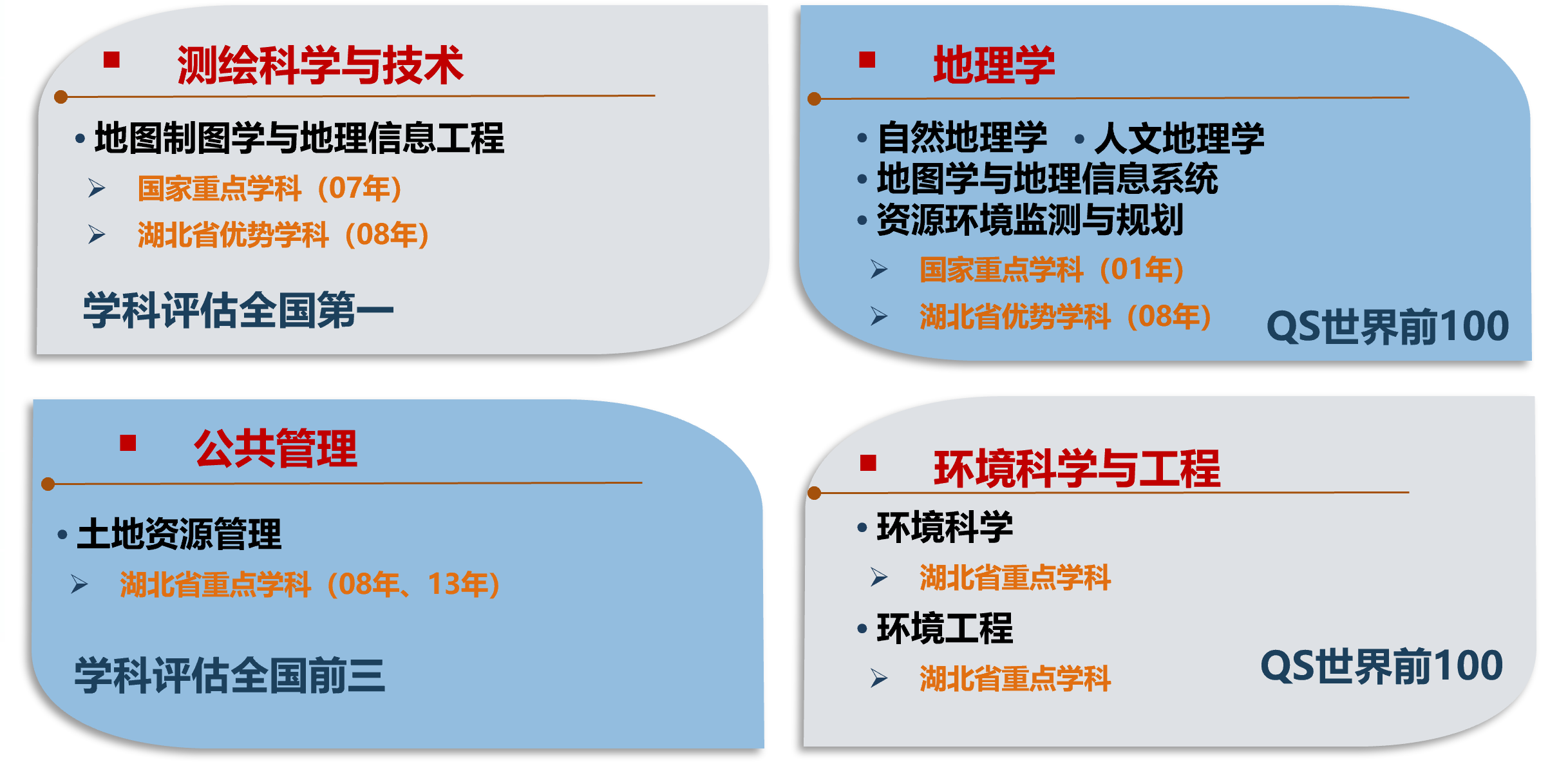 地图制图学与地理信息工程属于国家“双一流”学科“测绘科学与技术”,源于1956年武汉测量制图学院开设的地图制图专业。在新型地图设计、地图自适应表达、空间智能技术、专业地理信息系统等方面形成了独有的技术与方法体系,引领我国地图制图与地理信息工程的技术方法创新。测绘科学与技术在教育部第四轮学科评估获评A+等。