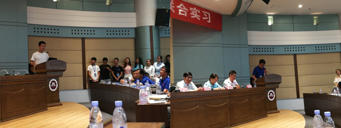 学生汇报实习成果(左)及在闭幕式作为学生代表发言(右)