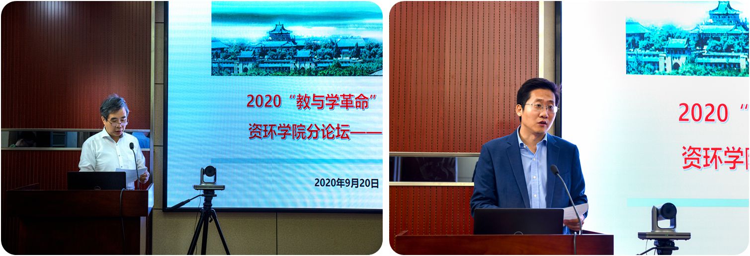 李满春教授分享了大数据时代地理人才培养的经验和MOOC建设情况,对学生提出勤学、苦练、智创的要求。胡石元教授以科研育人为主题,提出课堂教学与科学训练有机结合的方式并分享了线上线下指导学生科研活动的经验。刘慧平教授关于GIS本科教学的普适性和特殊性的分析非常具有启发性,提出教学质量的核心需坚守因材施教、制定并靶向教学目标;唐晓龙教授分享了环境工程专业认证中精细化教学质量标准建设的经验。各位专家同时通过线上会议的形式与学院教师对大家关心的问题进行了交流。