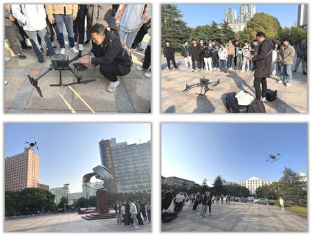 信息学部友谊广场进行了无人机LiDAR数据采集实习。王老师为同学们详细讲解了无人机和激光扫描仪的操作规范。在王老师的指导下,同学们进行了无人机LiDAR数据采集模拟演练,学习了数据获取相关专业技能。