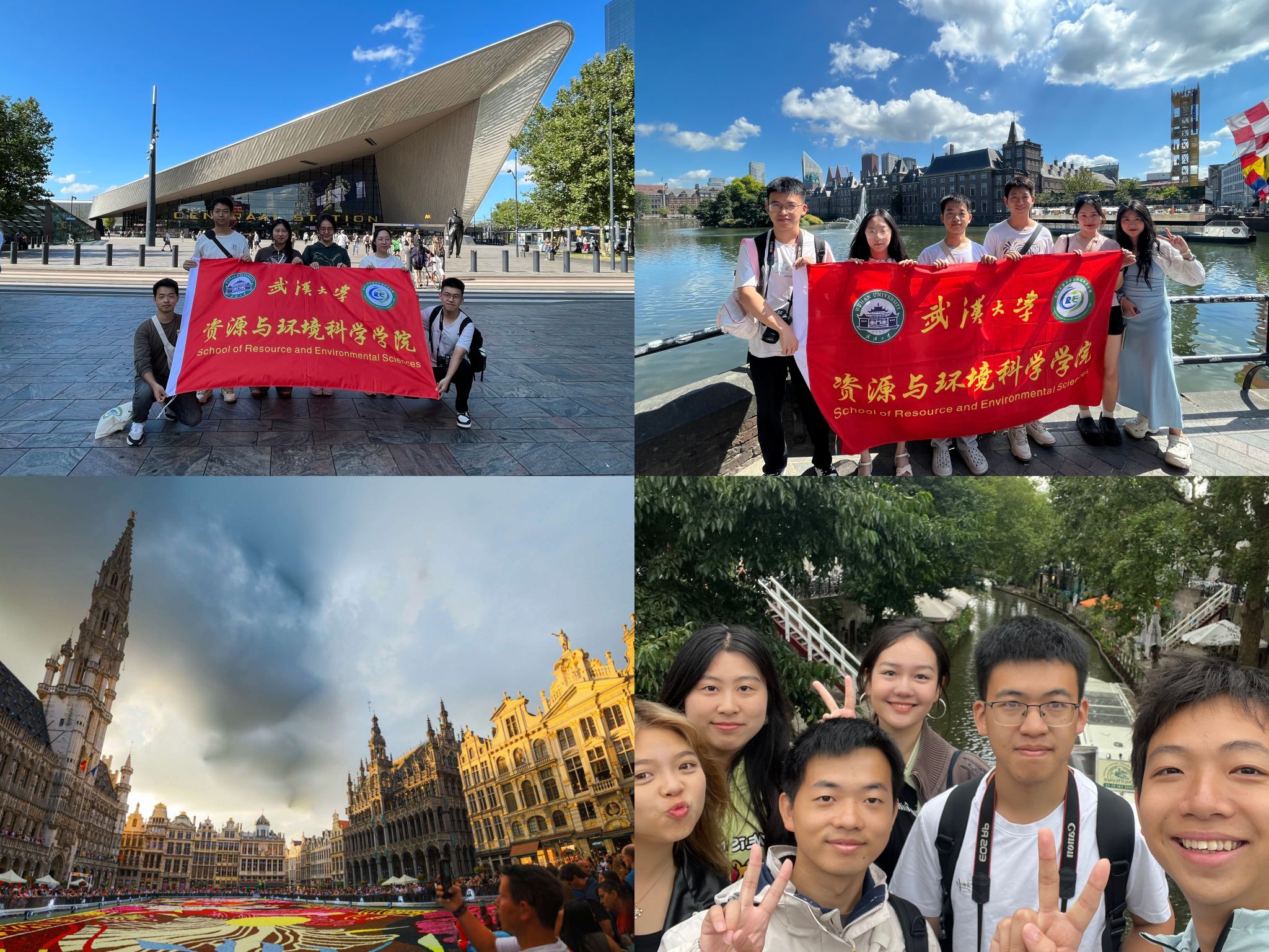 图4 同学们在鹿特丹中央车站、海牙、布鲁塞尔、乌德勒支