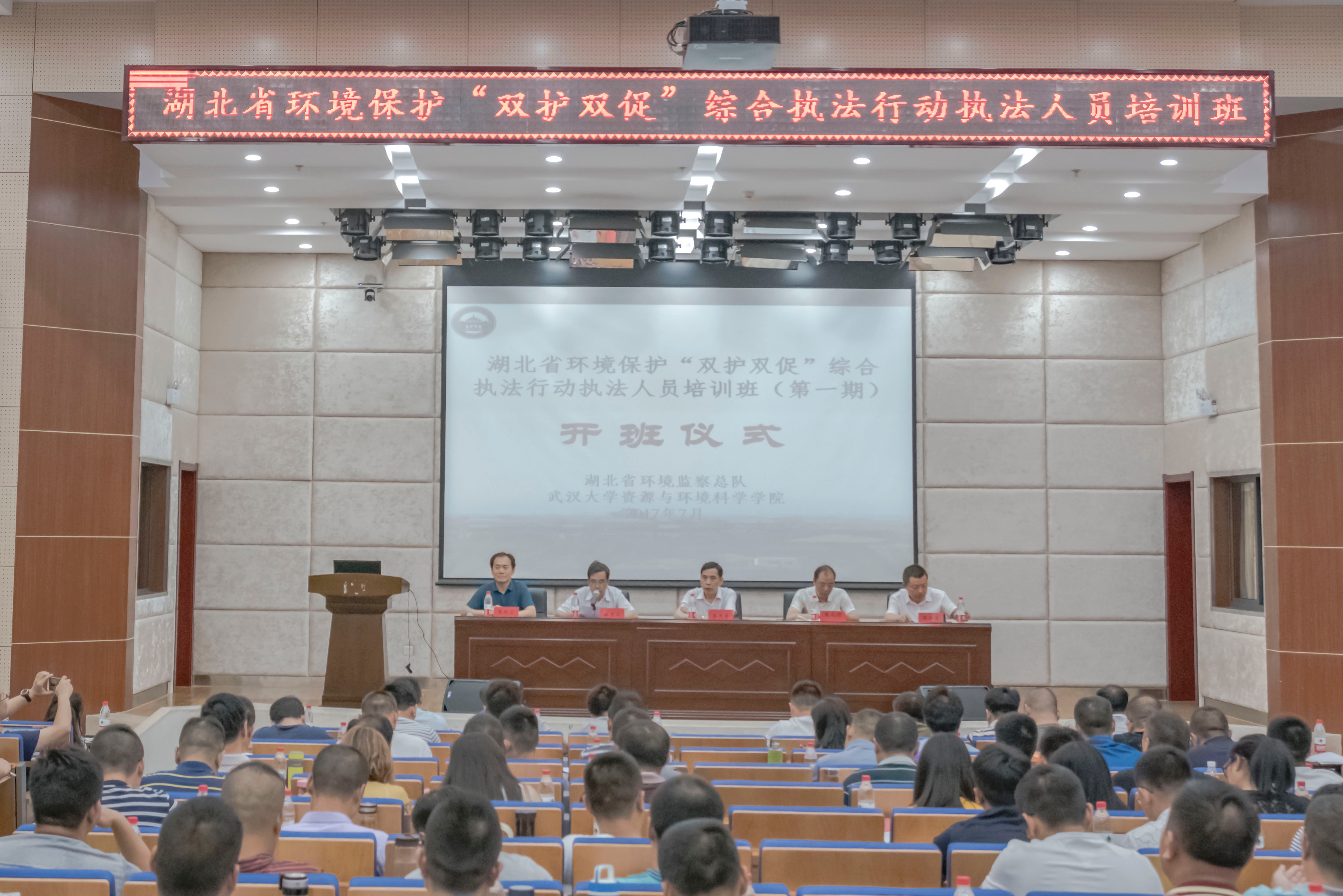 2017年7月23日至30日,老王论坛 受湖北省环境监察总队委托,结合湖北省环境保护“双护双促”综合执法行动在老王论坛 成功举办了两期环境监察人员培训班,共有320余名学员参加了培训。