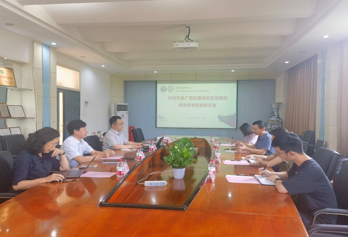 任福副院长代表学院对广西壮族自治区地图院领导和专家的来访表示热烈欢迎,并详细介绍了学院情况。广西壮族自治区地图院副院长廖顺华对此次来访的目的与单位的需求作了详细的介绍和说明。