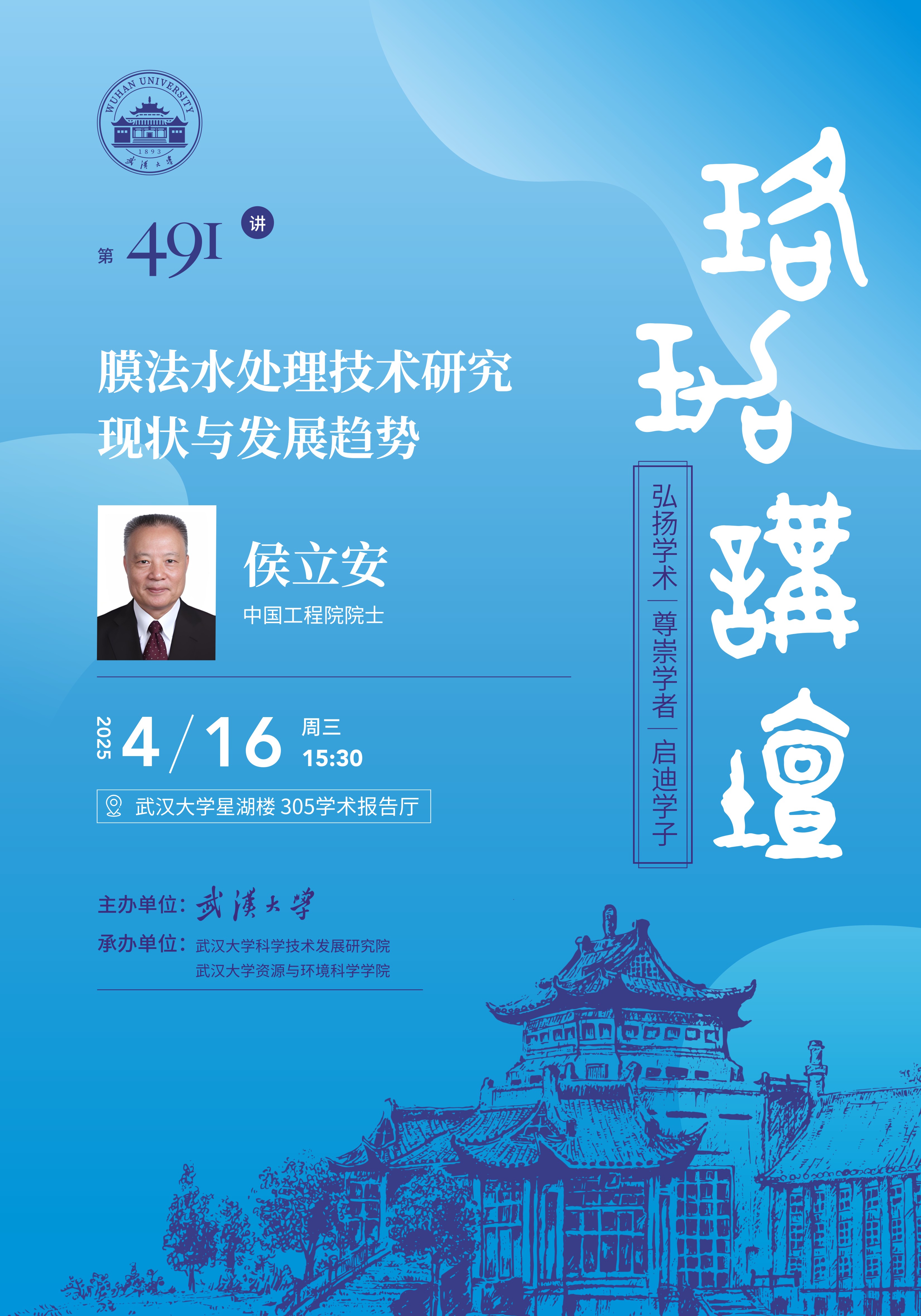 【学术 讲座】4月16日(周三)下午15:30--17:00 侯立安院士:膜法水处理技术研究现状与发展趋势