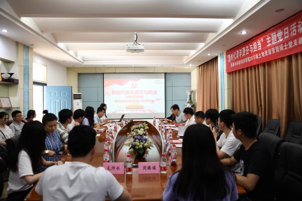 土地资源管理专业2017级硕士研究生党支部召开“新时代青年责任与担当”主题党日活动。副校长舒红兵院士,学院党委书记刘兴国,副书记雷起宏、冯丹,研究生辅导员梅菲老师等受邀出席。