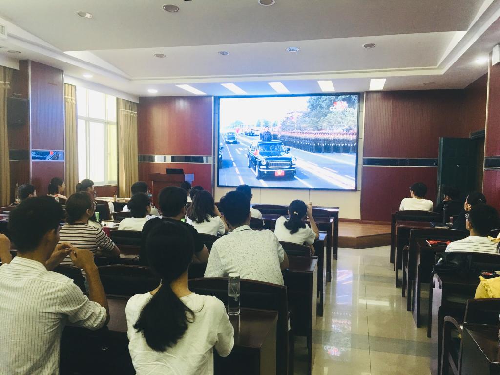 10月1日,在北京天安门广场隆重举行庆祝中华人民共和国成立70周年大会,中共中央总书记、国家主席、中央军委主席习近平发表了重要讲话,庆祝大会后举行了盛大的阅兵式和群众游行。资环学院组织学生在220报告厅集中观看直播,还有众多学生在家里、宿舍和实验室通过电视、手机、网络等多种方式收看直播,反响热烈。