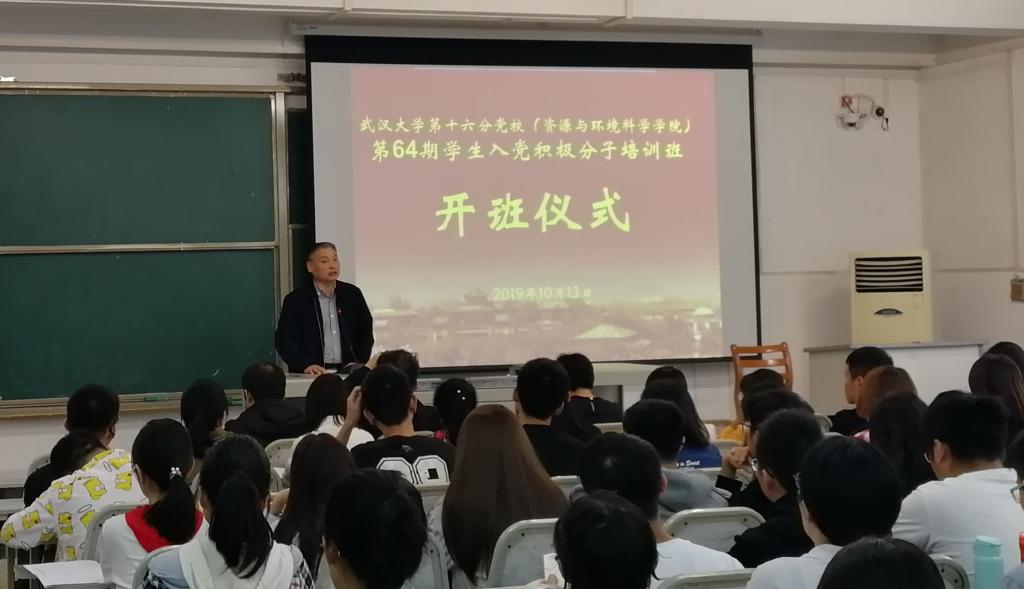 党校(第十六分党校)第64期学生入党积极分子培训班开班式在信息学部1教402教室举行。学校党校督导员杨裕利,学院党委书记、分党校校长刘兴国,学院党委副书记、分党校副校长雷起宏、冯丹,以及辅导员老师出席开班式。开班式由学院组织员、培训班班主任易真主持。