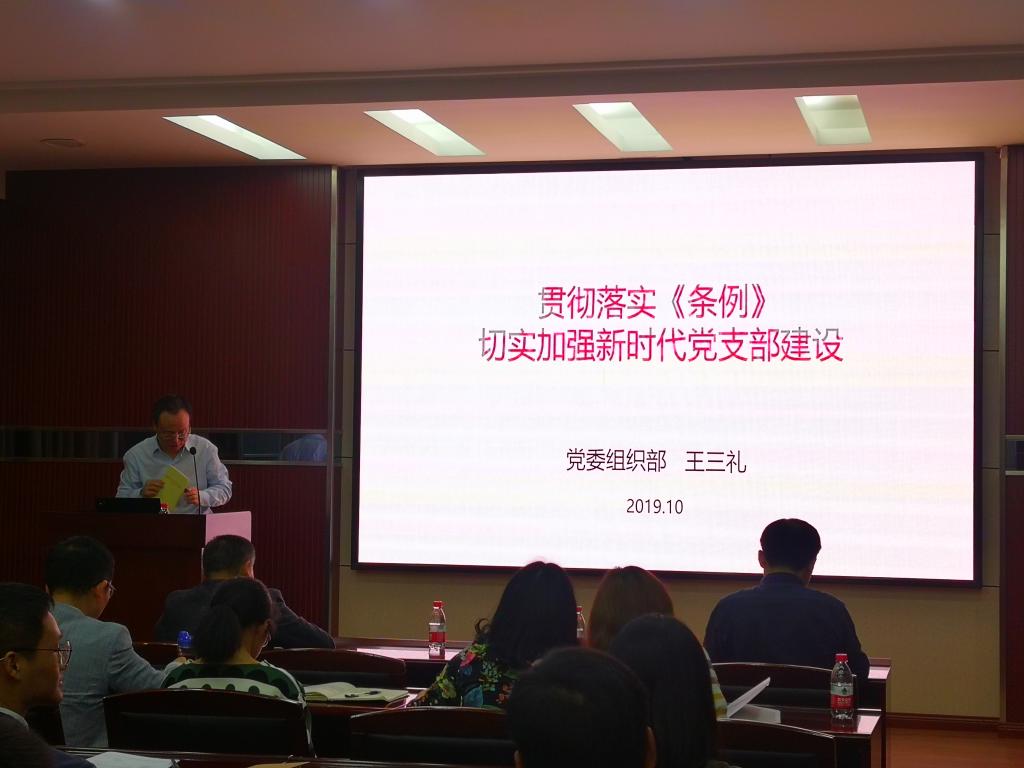 “不忘初心、牢记使命”主题教育党支部书记及骨干培训在学院220报告厅举行,校党委组织部副部长王三礼应邀做了题为“贯彻落实《条例》 切实加强新时代党支部建设”的报告。学院党委书记刘兴国、党委副书记雷起宏、学院全体支部书记及部分支委参加培训。培训会由刘兴国书记主持。