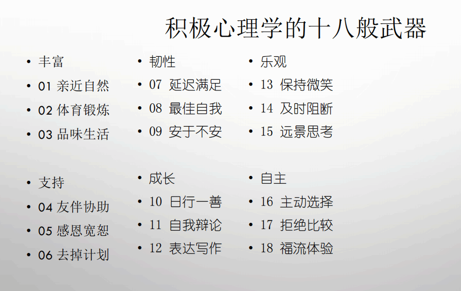 图3 积极心理学的十八般武器