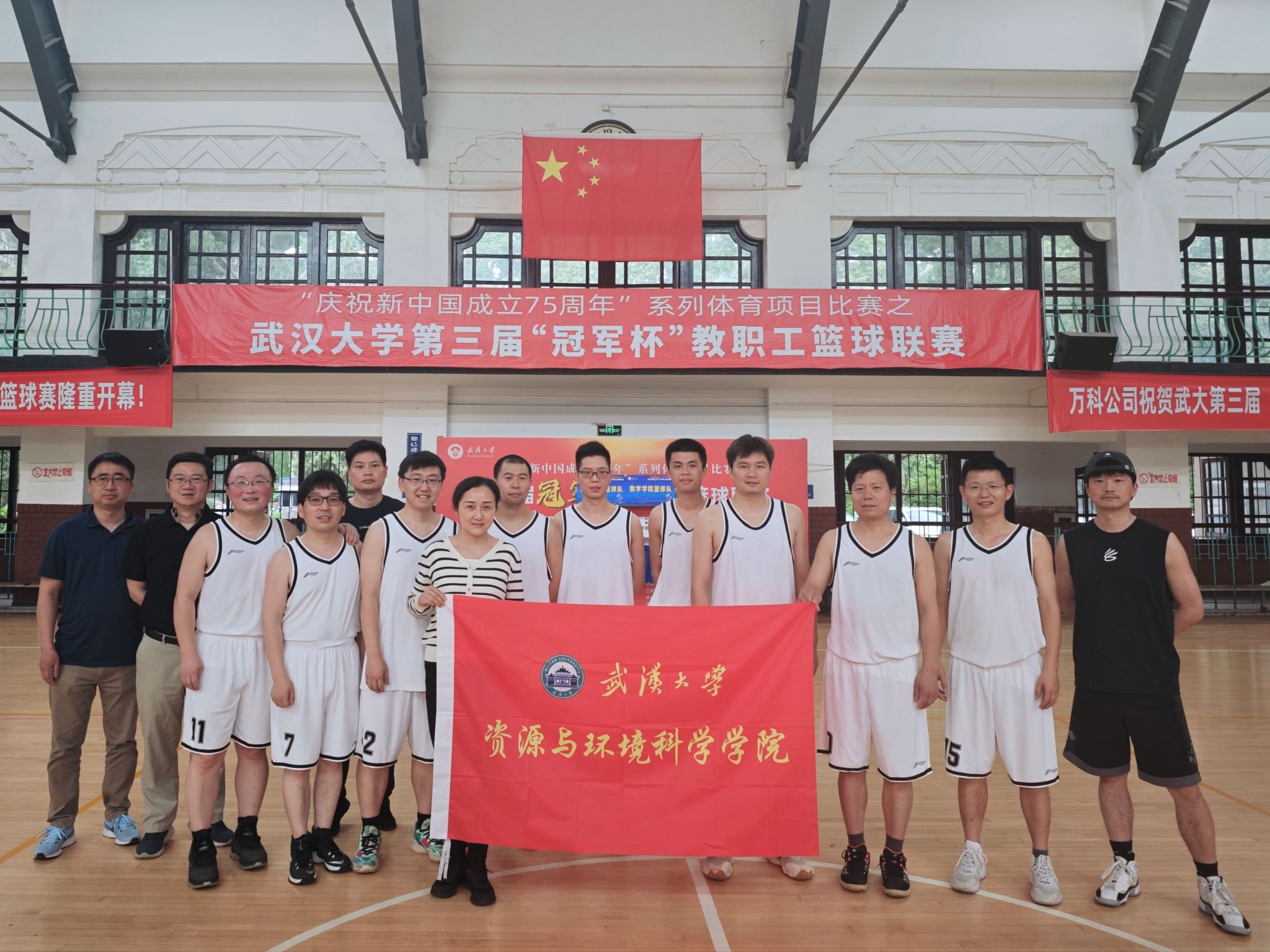 面对繁忙的工作和生活,以及伤病的不时困扰,资环院教工篮球队的全体队员们展现出了非凡的毅力和决心。他们克服了身体上的不适和生活中的困难,以饱满的热情和顽强的斗志投入到每一次训练和比赛中。经过一个多月的激烈角逐,资环学院篮球队凭借坚定的意志和出色的团队配合,在理学部篮球比赛中脱颖而出,荣获亚军,并成功挺进学校总决赛。